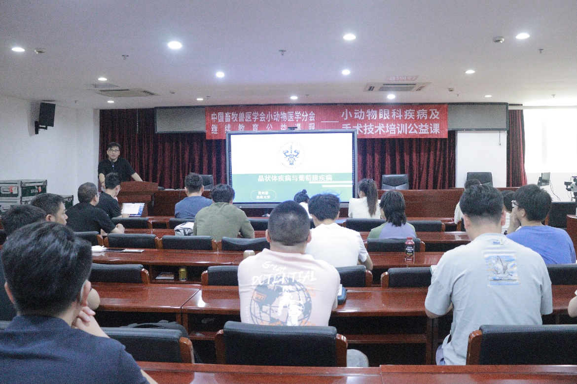 近日,由中国畜牧兽医学会小动物医学分会和动物科学学院联合主办的“卓越兽医临床青年教师及小动物临床兽医师系列公益课程——小动物眼科疾病及手术技术培训”,在新圣农楼七楼会议室举办。学院青年教师,以及来自福建省的40余位临床兽医师参加此次培训。动物科学学院党委书记修新田参加开班仪式。