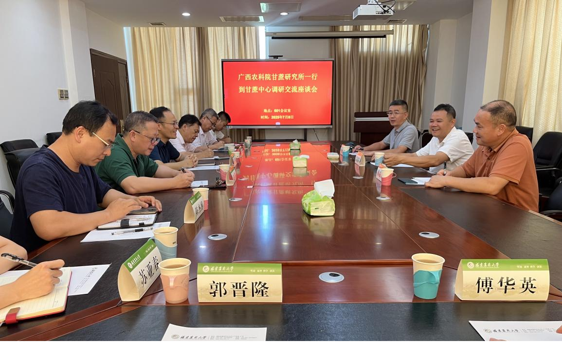 7月8日,广西农科院甘蔗研究所所长吴建明一行3人到国家甘蔗工程技术研究中心交流座谈。中心主任高三基研究员、副主任邓祖湖研究员以及中心各研发室主任和学术骨干参加座谈会。