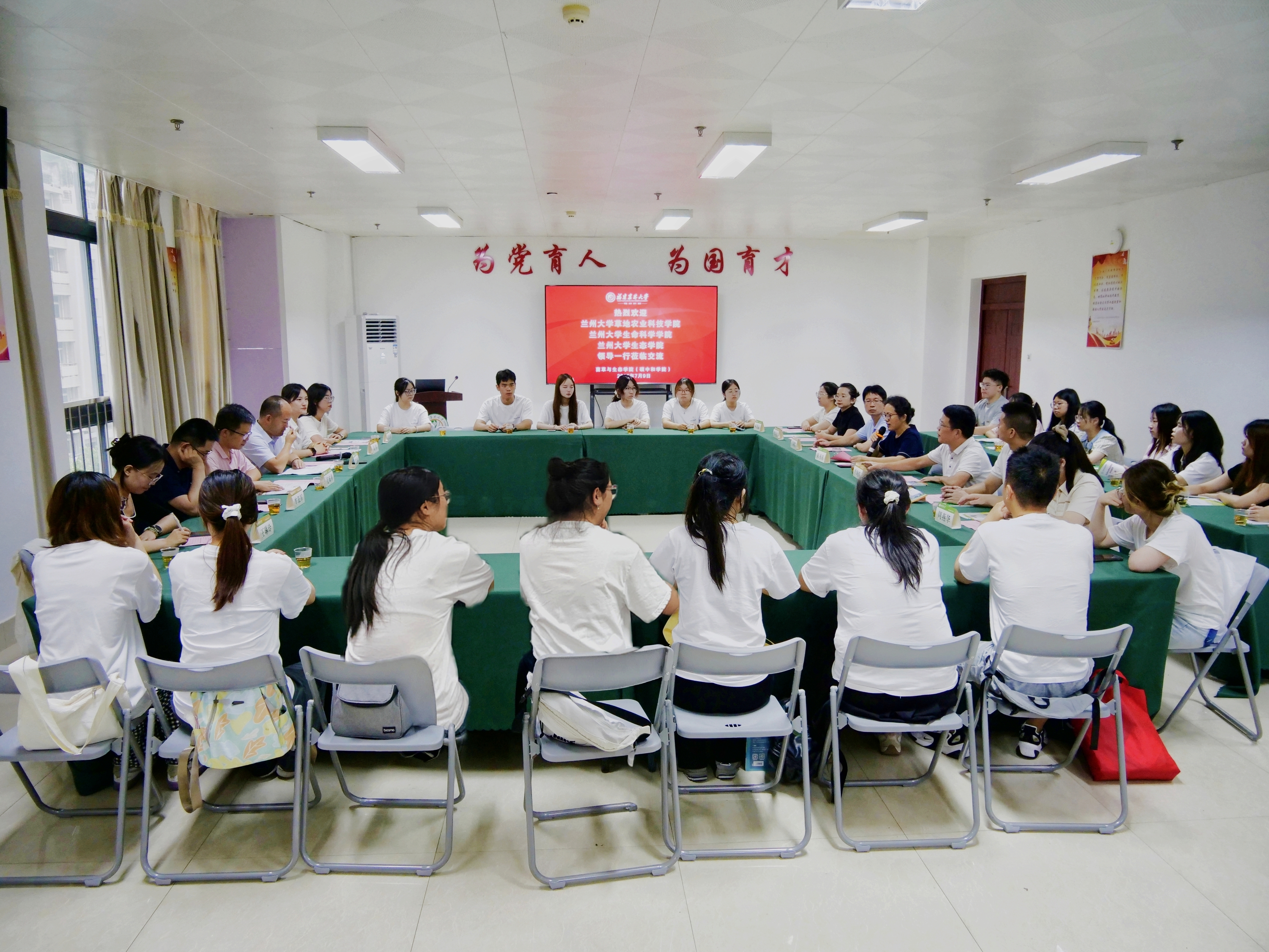 7月9日上午,兰州大学草地农业科技学院党委副书记、副院长范成勇,草地农业科技学院党委委员张金林,生命科学学院植物细胞与生物育种系副主任牟长军带领师生一行20余人到菌草与生态学院开展工作交流。学院党委书记陈月霄、副书记李晓辉、副院长吴则焰、生态学系教师韩庆庆、全体辅导员陪同调研并进行深入交流。