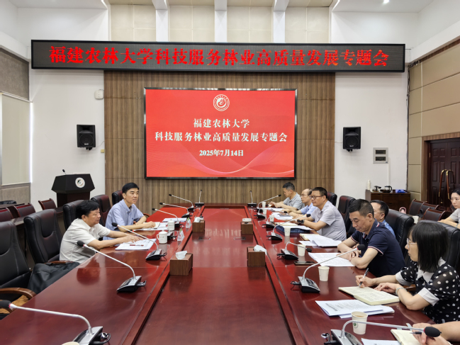 7月14日上午,校长兰思仁主持召开科技服务林业高质量发展专题会,系统总结“十四五”我校林草科技工作,谋划“十五五”林草科技重点任务,提升林草科技支撑服务能力,助力林学学科冲击国家一流学科。副校长林庆藩参加会议。