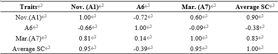 表1 A1、A6、A7和平均蔗糖分相互间的遗传和表型相关系数