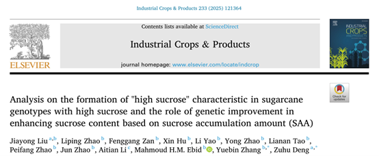 6月24日,Industrial Crops and Products《工业作物与产品》期刊在线发表了开云网页版国家甘蔗工程技术研究中心邓祖湖研究员团队题为Analysis on the formation of "high sucrose" characteristic in sugarcane genotypes with high sucrose and the role of genetic improvement in enhancing sucrose content based on sucrose accumulation amount (SAA)【基于蔗糖积累量(SAA)分析高糖甘蔗基因型 “高蔗糖”性状形成及遗传改良对提高蔗糖含量的作用】的研究论文,阐述了甘蔗高糖基因型“高糖”特性的形成以及遗传改良在蔗糖分提高过程中如何发挥作用,为甘蔗高糖育种取得进一步突破提供思路。
