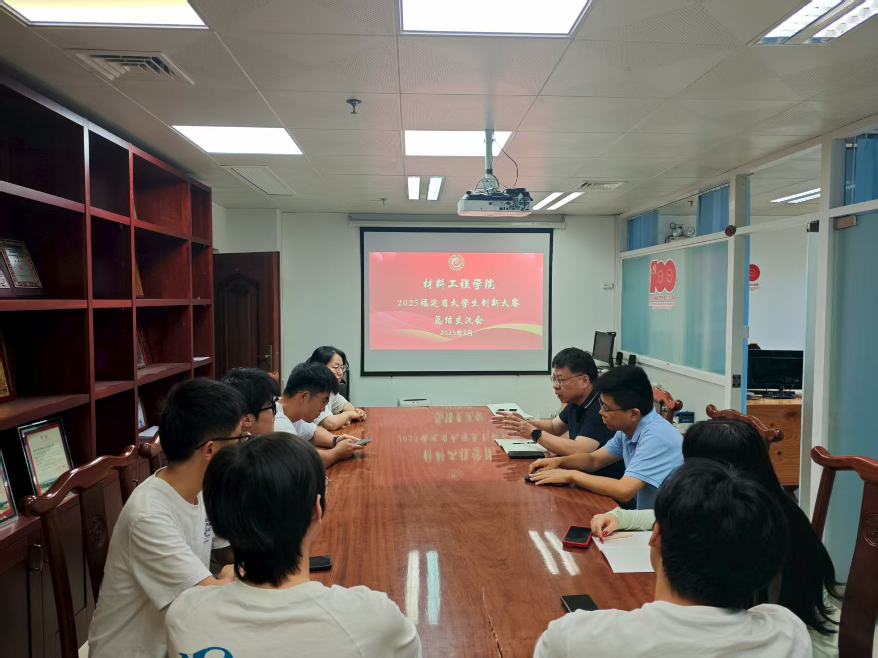 7月25日,材料工程学院2025年福建省大学生创新大赛总结交流会暨国赛备赛动员会在综合楼417召开,学院党委副书记郭朝晖与两支参加省赛现场赛队伍的同学及指导老师参加座谈。