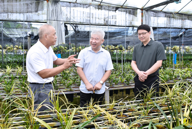 在清流台湾农民创业园,赖海榕一行与清流县委书记吴钟民、县委副书记罗志强、副县长钟程亲切会见,双方围绕加强校地合作进行了交流。在副县长钟程陪同下,赖海榕一行到清龙生态兰花有限公司调研,细致察看兰花生产基地温控大棚、兰花种苗繁育中心等;在三明南拳菽菽食品科技有限公司,详细了解豆腐皮产业发展情况;在清流兰山茶饮有限公司,县委副书记、县长莫彩华陪同考察了台资企业及茶产业发展情况。赖海榕表示,清流台湾农民创业园以花卉苗木为主特色,与我校有广阔的合作空间,希望进一步加强合作,共同为推动两岸融合发展作出新的更大贡献。一是继续深化兰花领域合作,我校兰科植物保护与利用国家林草局重点实验室已成为世界兰科植物研究的前列单位,要进一步发挥科技和人才优势,为地方产业发展注入新动能新优势;二是着力推动茶文化、茶产业、茶科技统筹发展,开云网页版与台湾具有80年的茶缘,被誉为“台湾茶叶之父”的吴振铎是学校1946届农艺系优秀毕业生,学校牵头制定的国家标准《台式乌龙茶》《台式乌龙茶加工技术规范》是两岸同胞首次共同制定的国家标准,要进一步加强合作,以“三茶”统筹引领推动清流茶产业高质量发展;三要积极拓宽合作渠道,以台湾农民创业园为纽带,围绕生物育种、特色农业、食品产业、乡建乡创等,深化拓展校地企交流合作,促进两岸同胞心灵契合,努力在探索海峡两岸融合发展新路上作出积极贡献。调研期间,赖海榕还看望了我校校友、全国劳动模范、全国三八红旗手兰爱珍,诚挚邀请她返校交流、为师生作报告。