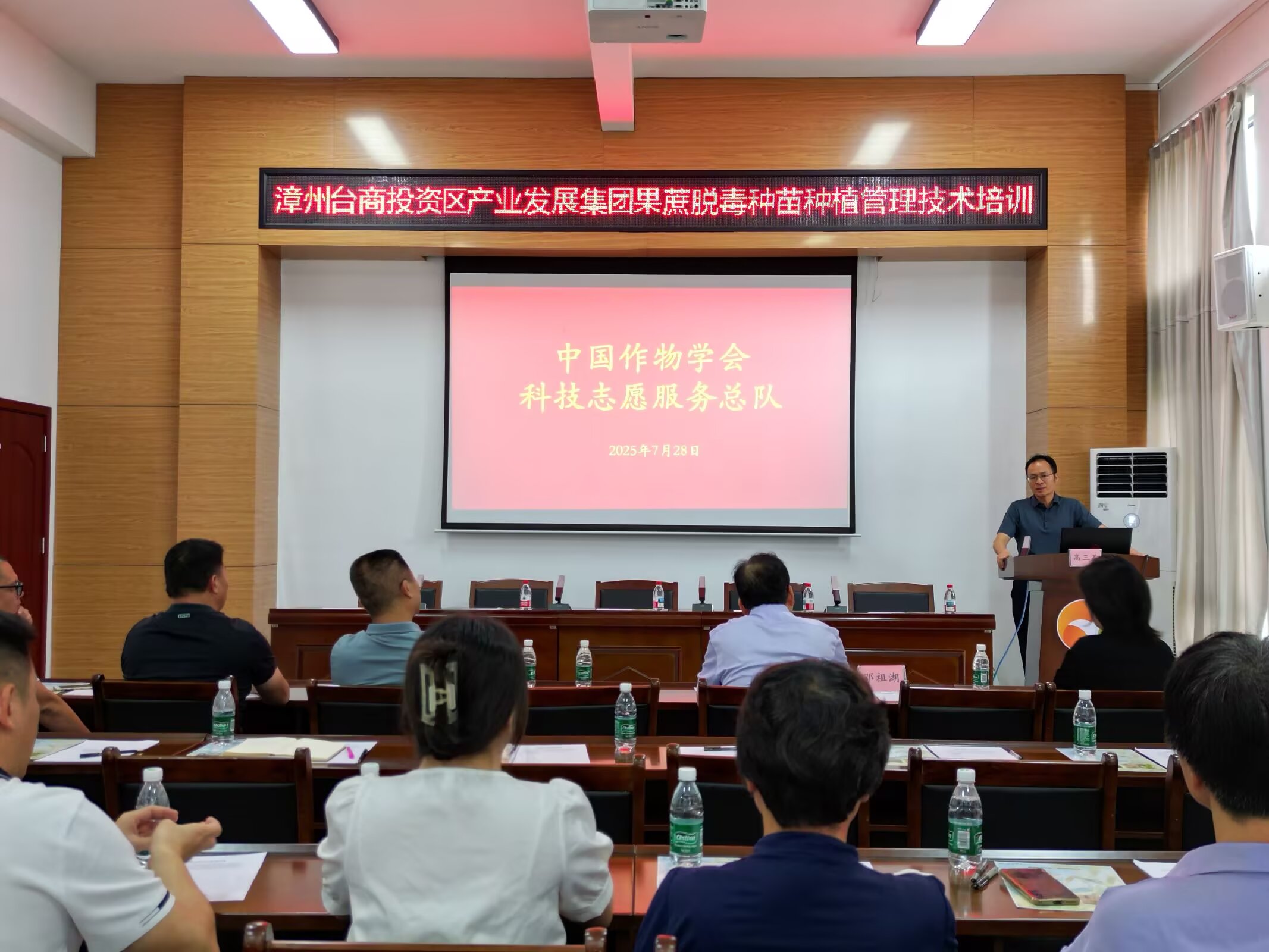 专家团队来到漳州台商投资区产业发展集团,举办“果蔗脱毒种苗种植管理技术培训”。邓祖湖研究员从选地、整地、施肥、覆膜等环节系统介绍了脱毒杯苗直种商品蔗的栽培技术,高三基研究员介绍了果蔗主要病虫害发生与防控技术。谢源博士介绍果蔗三产融合成功案例。当地企业技术骨干、种植户共计30余人参加本次活动。
