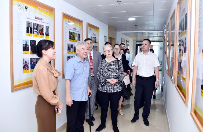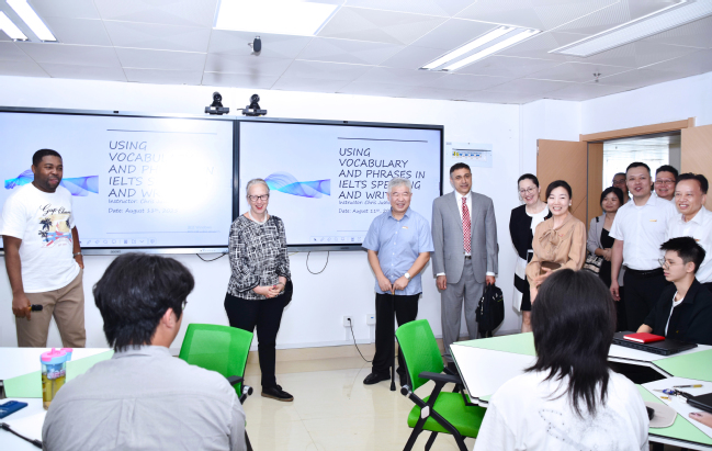 座谈会前,梅倩琳一行考察了戴尔豪西大学联合学院教学与办公场所,与正在开展雅思培训的师生进行互动交流。梅倩琳对学院在语言培训、学生培养、师资建设等方面取得的成绩给予充分肯定。