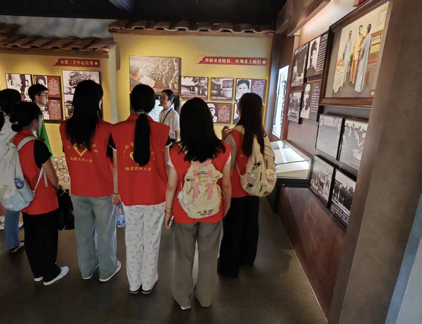 7月8日,实践队成员们前往闽中革命史纪念馆,正逢该馆在进行七七事变88周年的专题活动。步入闽中革命史纪念馆,科技宛如一束追光,让尘封的烽烟瞬间腾空而起,AI复原的1935年密林在四周疯长,松针滴着雨、枪管凝着霜;全景声在耳蜗里炸开:枪声由远及近,子弹贴耳掠过,革命标语像磷火一样在暗林里一句接一句地亮起,历史第一次被拉到“触手可及”的距离。此外,在该馆讲解员的带领下,实践队成员们不仅对场馆内所展示的革命历史有了更加深入的理解,还共同走进闽中革命烈士陵园,重点学习了七七事变的时代背景和战争概况。经此一行,实践队成员们望见了革命的不易,望见了无数为革命事业奋斗终身的烈士英雄,更加笃定了在当今宣传爱国主义教育的重要性。当红色基因以如此磅礴的姿态撞进每一根毛细血管,该实践队队员们忽然明白:所谓传承,并不是复制一段记忆,而是让那道90年前的光,穿过岁月尘埃,照进自己的瞳孔,再折射向更远的未来。下午,实践队成员前往莆田市博物馆感受莆田当地的民俗文化以及发展历程,了解莆田独特的城市底蕴。