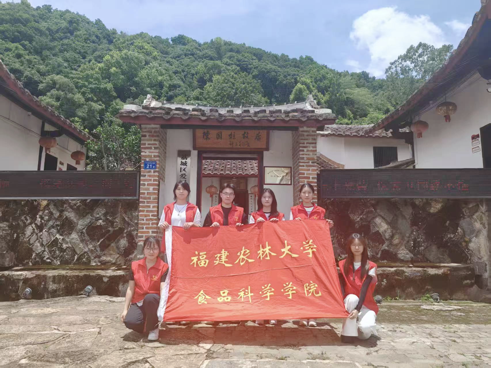 7月6日,即本次实践活动第二天,早晨实践队成员们便集体前往陈国柱故居与苦竹寺。在蜿蜒盘旋的山路上度过了漫长时间之后终于抵达目的地,在这段路途中,队员们感受到的是在当时艰苦环境下想要开展革命的困难。当队员们走进陈国柱故居所在的下垞村时,一路上都是爱国主义教育宣传的标语和宣扬伟大爱国精神的海报,队员们无不为之感到振奋。行至陈国柱故居,队员们集体进行参观浏览,由队伍宣讲员为成员们进行介绍。这间不起眼的闽中老屋,是中国共产党在闽中播下的第一粒火种。木门槛被岁月磨出了圆润的弧度,也磨亮了“星星之火,可以燎原”八个字的锋芒。当年,支部在此秘密成立,微弱的灯火穿过窗棂,先是点亮了黑夜里的莆田,继而照亮了整个闽中。此外,几位实践队成员还前往苦竹寺进行参观,解放战争期间,苦竹寺因地理位置隐蔽,成为了闽中游击队组织培训骨干的基地和秘密活动的革命据点,借此机会队员们可以更深入地了解当时闽中革命的发展概况。