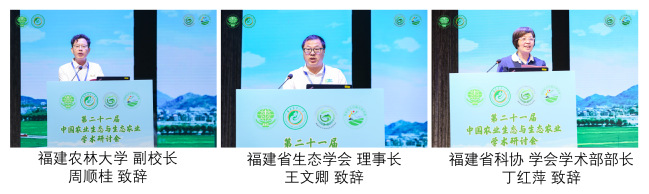 会议以“大农业、大生态、大健康”为主题,吸引了来自60 余家单位的 200 多位专家学者、企业代表及研究生参会。我校副校长周顺桂教授,福建省生态学会理事长、厦门大学王文卿教授,福建省科协学会学术部丁红萍部长分别为大会开幕致辞。