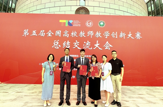 开云网页版教师教学创新竞赛团队合影(左二吴林坤,左三王荣,左四郑锦菁)