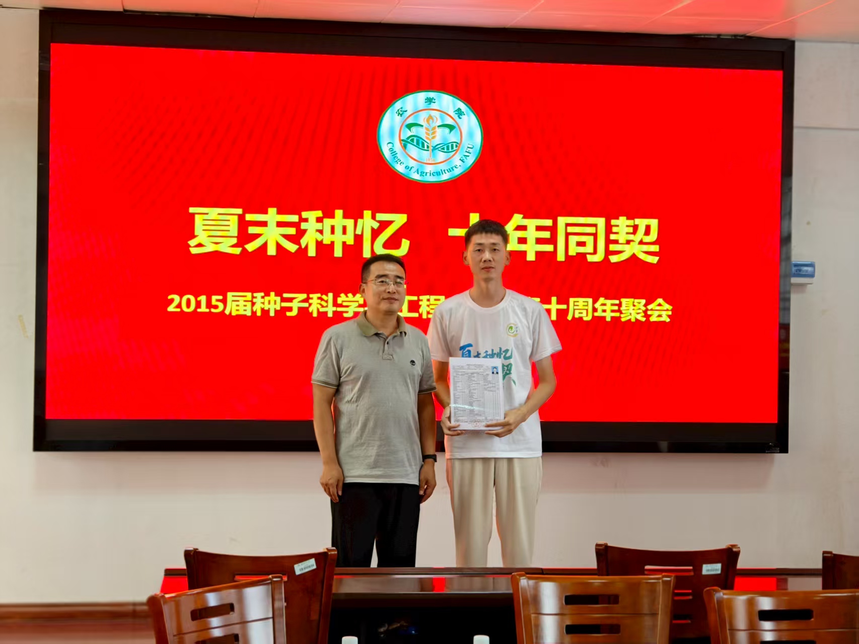 随后,校友们逐一分享了毕业十年的经历:有人深耕农业一线,在种子研发、生产推广领域扎根,参与培育的优质作物品种已在多地推广种植,为保障粮食安全贡献力量;有人投身农业科技企业,从基层技术员成长为管理骨干,推动企业技术升级与市场拓展;也有人跨界发展,在金融、互联网、政务工作等领域开辟新赛道,但始终难忘“种子人”的初心,关注着农业行业的发展。除了职业发展,校友们还畅谈了家庭生活的温馨片段,从青涩学子到为人父母,十年的蜕变与成长里,既有奋斗的汗水,也有生活的温情。