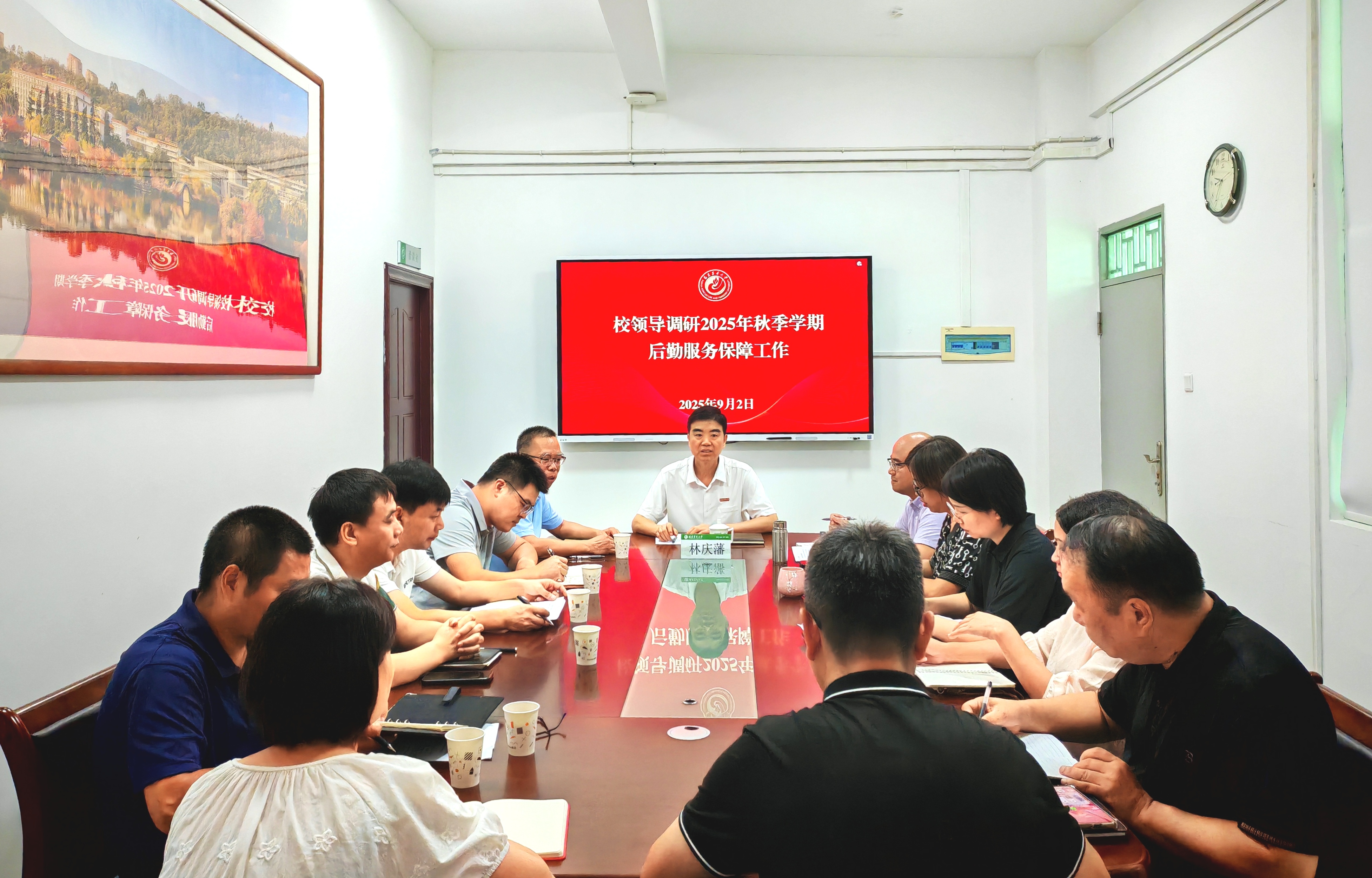 为深入贯彻落实学校2025年暑期提升办学治校能力专题研讨班会议精神,全力保障新学期各项工作有序开展,9月2日上午,副校长林庆藩到后勤管理处调研2025年秋季学期后勤服务保障工作。后勤管理处领导班子及各科室负责人参加调研,围绕“双一流”建设后勤保障新要求,与会人员系统汇报了迎新准备工作及2025秋季学期重点工作任务。