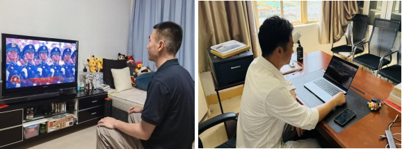 大会直播过程中,会场内气氛庄重肃穆。在场师生神情专注,认真聆听习近平总书记在大会上发表的重要讲话,共同回顾中国人民抗日战争的壮阔历程,深刻感悟中国人民在抗日战争中展现出的崇高精神。当看到受阅部队整齐列队、迈着铿锵步伐通过检阅台时,现场不时响起阵阵掌声,大家为展现出的国威军威倍感自豪,更对来之不易的和平生活倍加珍视。