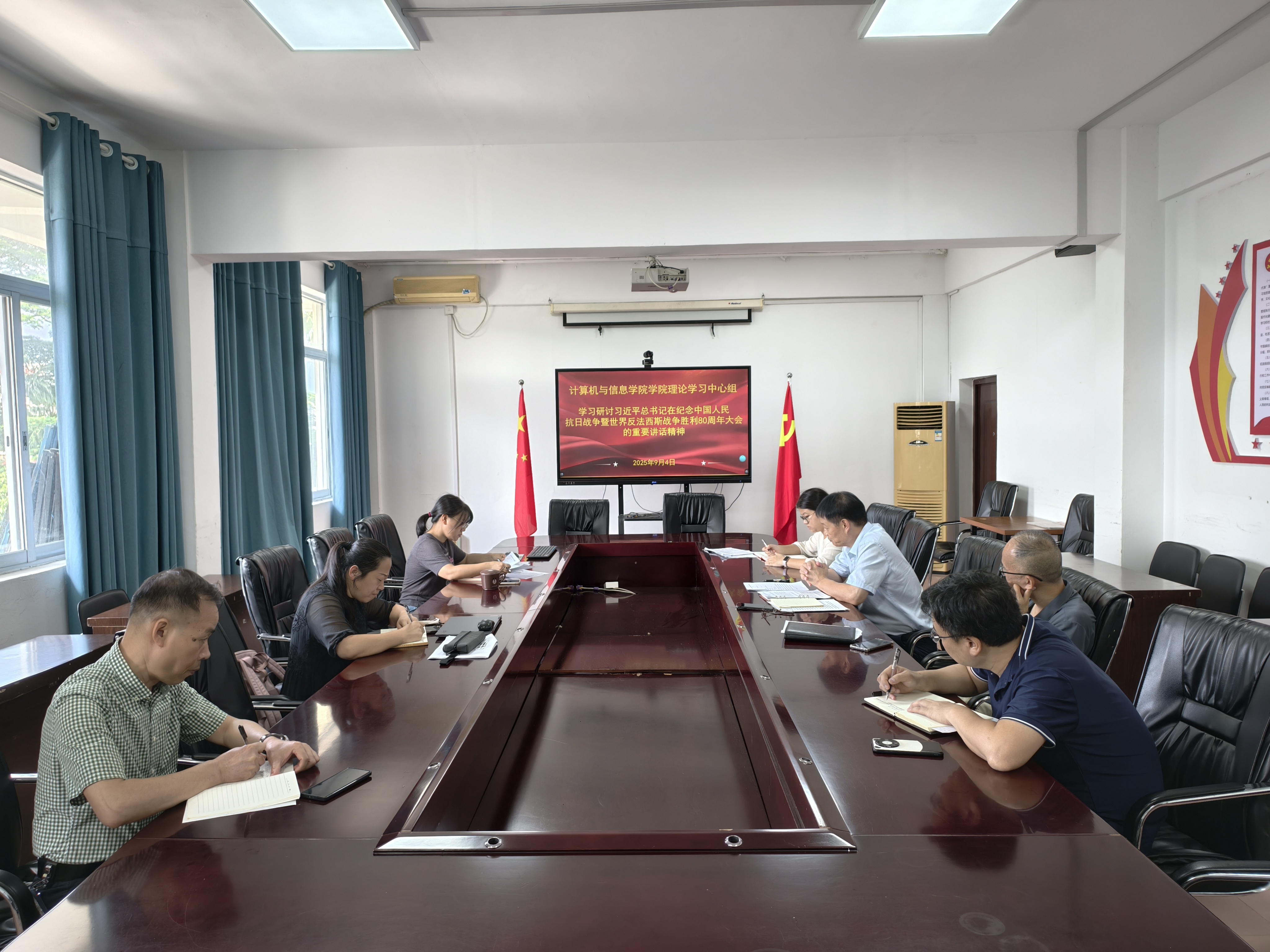 9月4日上午,计算机与信息学院召开理论学习中心组学习,专题学习习近平总书记在纪念中国人民抗日战争暨世界反法西斯战争胜利80周年大会上作的重要讲话精神。会议由学院党委书记曾起郁主持。