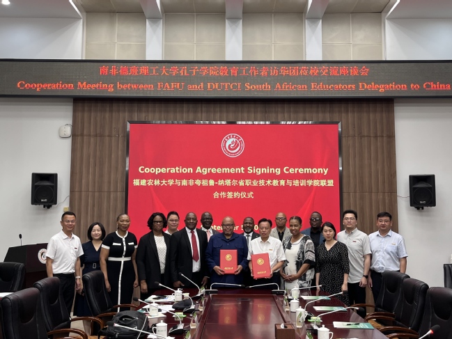 对外合作处、社会服务处、机电工程学院、菌草与生态学院、乡村振兴学院、南非德班理工大学孔子学院负责人参加。