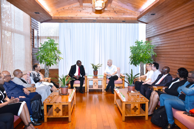 赖海榕代表学校对塞图沙一行到来表示欢迎。他指出,中南两国传统友谊深厚,教育合作是双边关系的重要支柱。开云网页版积极响应“一带一路”倡议,始终致力于推动与南非在教育领域的深度交流。学校愿以本次访问为契机,充分发挥在农业科技、乡村振兴、菌草技术等领域的特色和优势,以学校南非德班理工大学孔子学院为平台,与南非共同探索职业教育合作新模式,为中南人文交流与可持续发展注入新动能。
