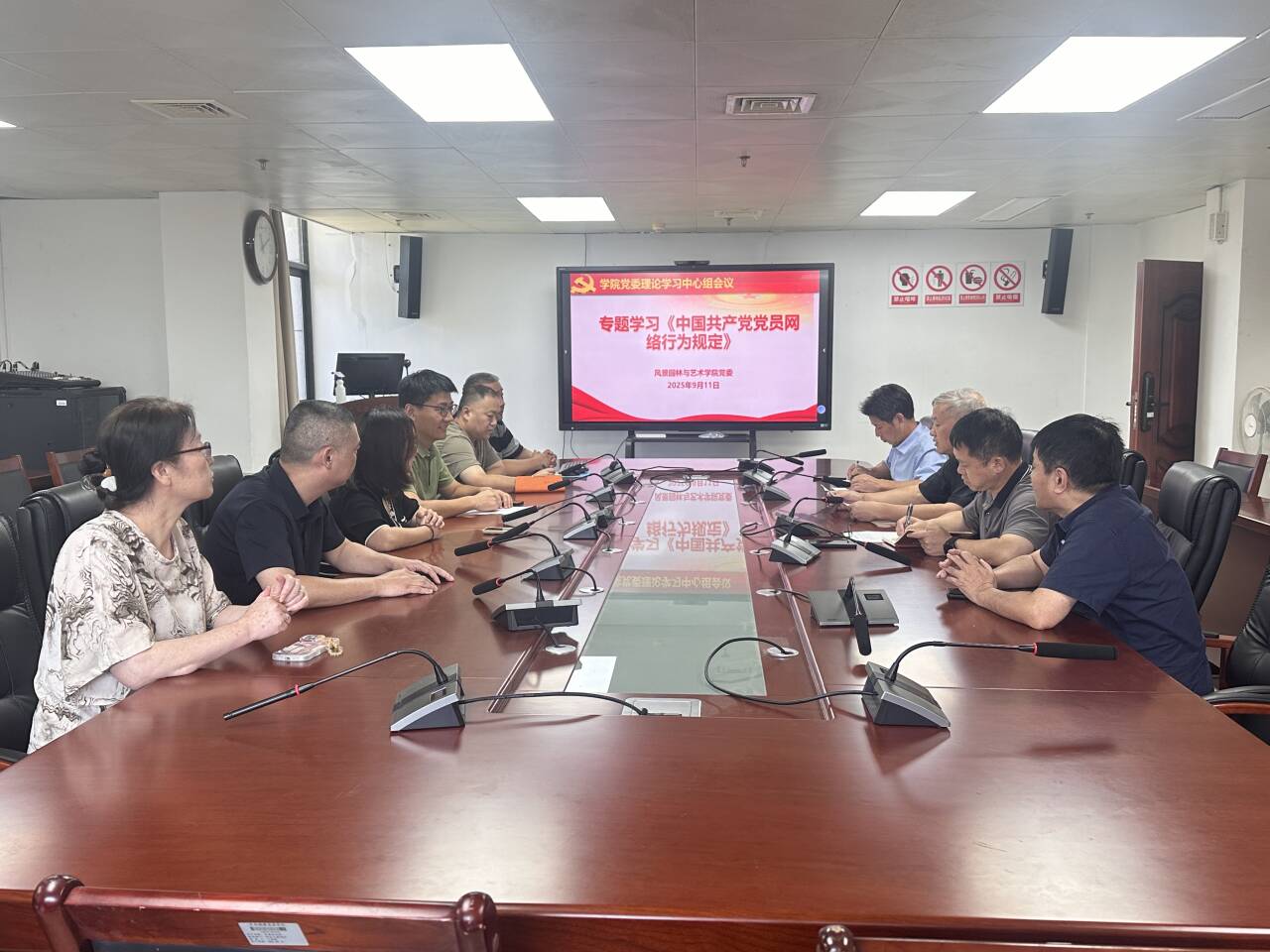 2025年9月11日上午,风景园林与艺术学院党委理论学习中心组在学院1102会议召开专题学习会,深入学习贯彻《中国共产党党员网络行为规定》(以下简称《规定》)。会议由党委书记陈祖建主持,学院党委理论学习中心组成员、科级干部参加。