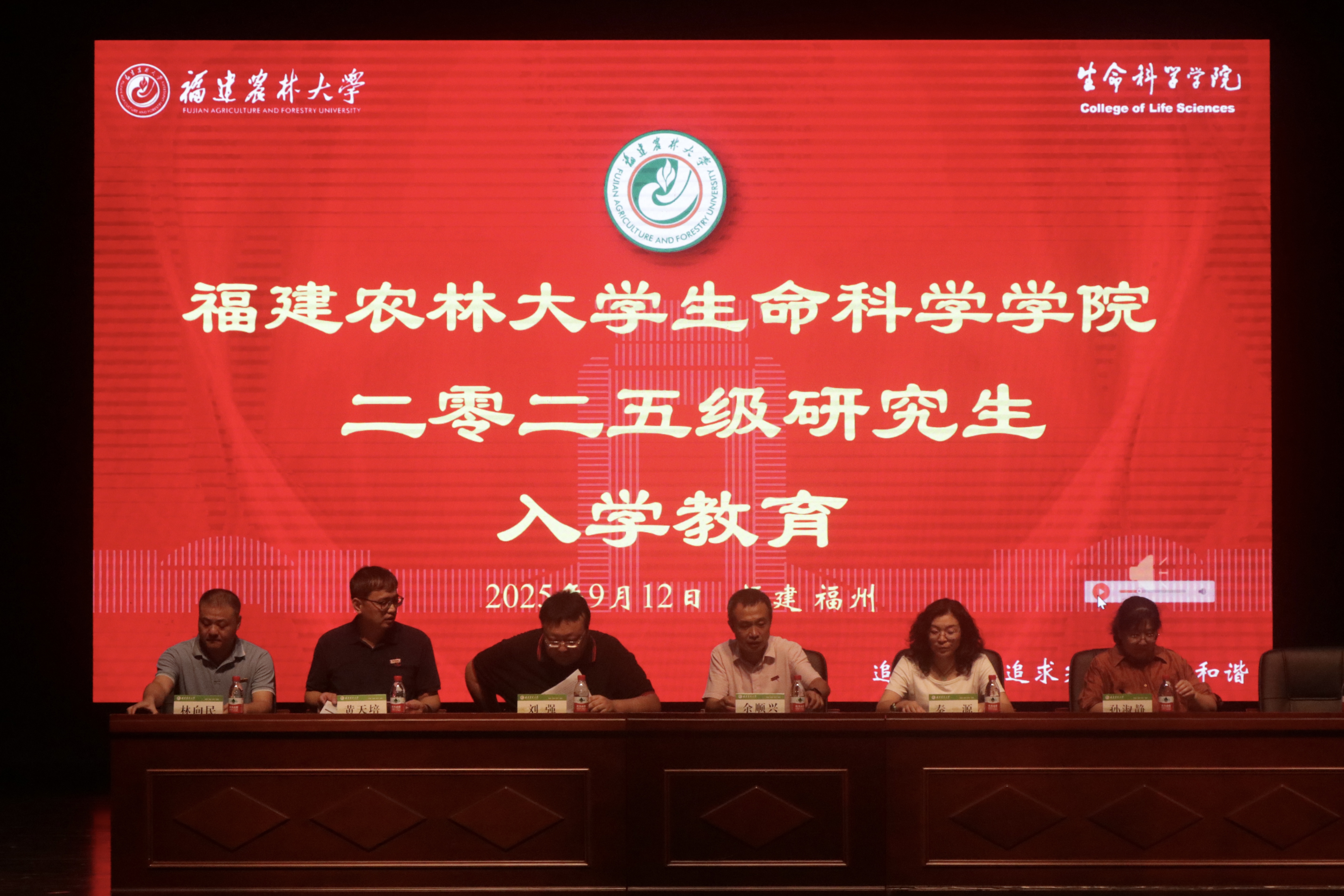 9月12日晚,生命科学学院在校大礼堂隆重举行2025级研究生入学教育。学院党委书记余顺兴、院长秦源、副书记刘强、副院长孙淑静、黄天培;教授委员会主任林向民在主席台就座。导师代表、研究生团队班主任代表、全体辅导员以及全体2025级研究生新生参加入学教育。大会由刘强主持。