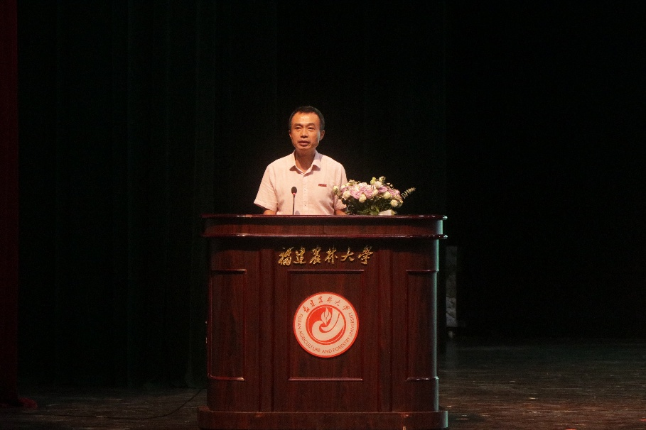 福建省“闽江学者”特聘教授、博士生导师蔡汉阳作为教师代表发言。他结合自己从田间地头到国际顶刊的科研历程,用“好奇、专注、诚信”三个关键词寄语新生:保持孩童般的好奇,在重复实验中寻找灵光;保持十年磨一剑的专注,在“失败堆”里提炼真知;守住学术诚信底线,让每一组数据、每一张图片都经得起时间检验。