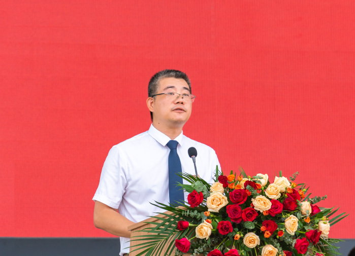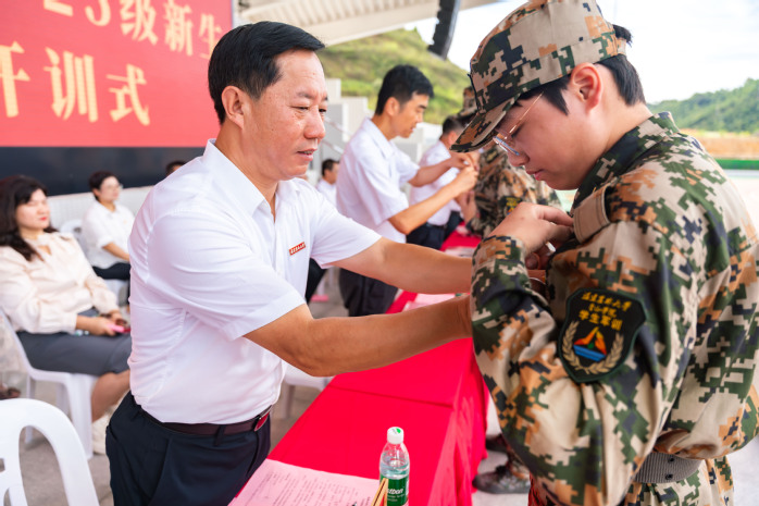 校党委曾华平副书记在致辞中深情寄语新生。他以学校悠久的办学历史和深厚的文化底蕴为引,勉励莘莘学子既要扎根专业沃土,勤学善思;又要在军训熔炉中淬炼品格,砥砺意志。并提出四点殷切期望:一要胸怀家国,将个人理想融入民族复兴伟业。希望同学们深刻把握时代机遇、勇担历史使命,将个人理想融入国家发展,在民族复兴的伟大进程中定位青春坐标;二要勤学笃行,在实践创新中厚积薄发。希望大家既要专注本专业学习,也要拓展跨学科视野,积极参与各类竞赛、社会实践、志愿服务和科研项目,在实践中增长才干,努力成长为高素质复合型人才;三要勇立潮头,在攻坚克难中绽放光华。希望同学们既能敏锐把握发展机会,勇敢尝试、不怕试错,也能坦然面对学业、人际、成长中的困难。学会在挫折中反思、在压力中成长,用积极的心态与务实的行动,跨越荆棘、实现突破;四要修身立德,在自律进取中行稳致远。希望同学们坚持体育锻炼,塑造健康体魄;坚守诚信底线,涵养高尚品格。学会自我管理,强化责任担当,为长远发展打下坚实的身心基础。