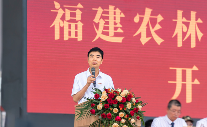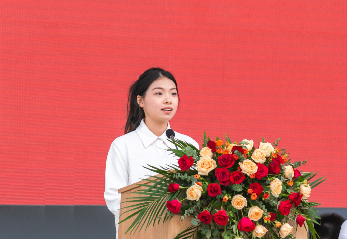 全国林业生物质材料标准化技术委员会委员、中国林学会林产化学化工分会理事、院长助理、工程技术系主任林冠烽作为优秀青年教师代表以“博学审问、慎思明辨”的古训相赠,勉励新生以朱子文化铸魂,以创新实践筑路。院学生会执行主席、2022 级园林专业朱俞臻作为在校生代表以三枚“星辰”为喻,分享成长心得,愿学弟学妹在大学星河中找准自己的坐标。2025级财务管理专业陈榆婷代表新生的发言朝气蓬勃,承诺将以“厚德博学、笃行致远”的院训精神为指引,在军训中褪去青涩,锤炼作风。