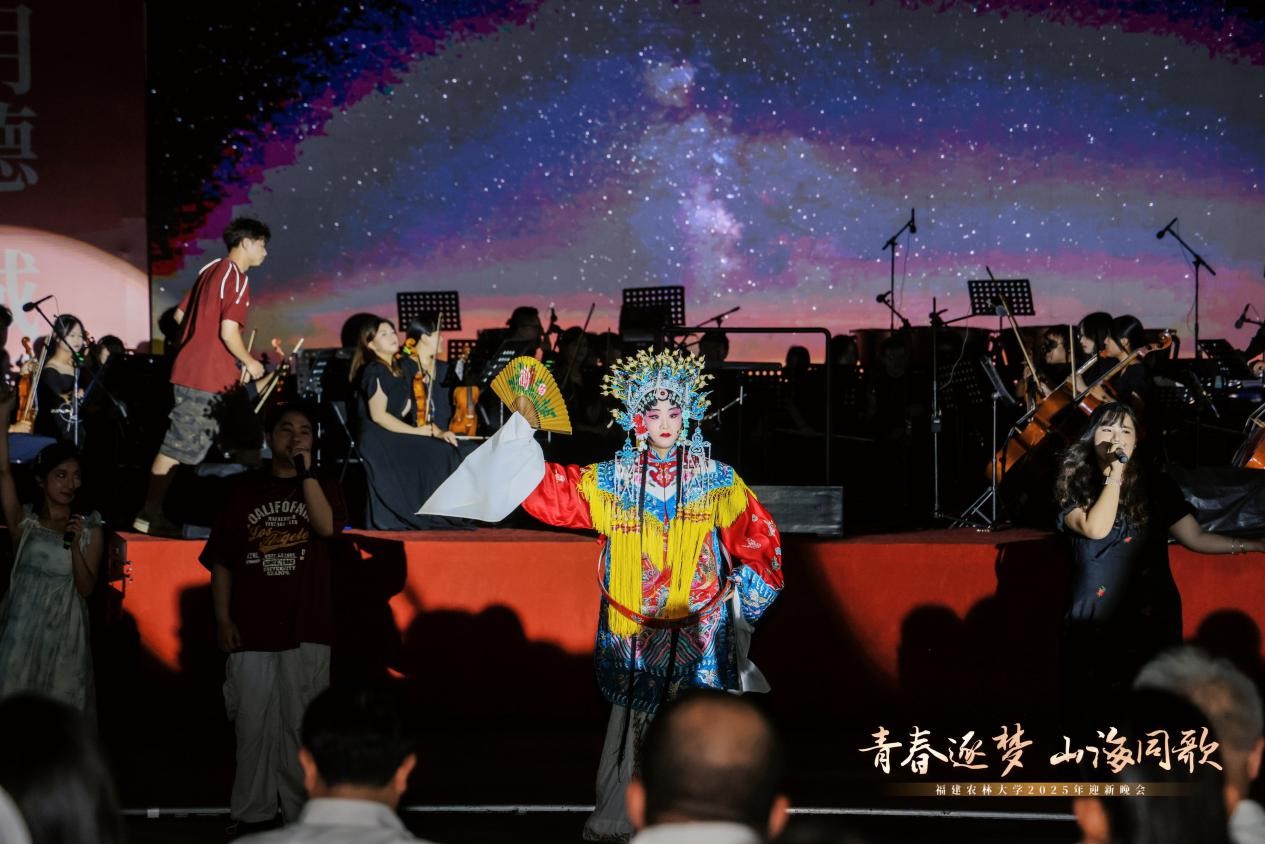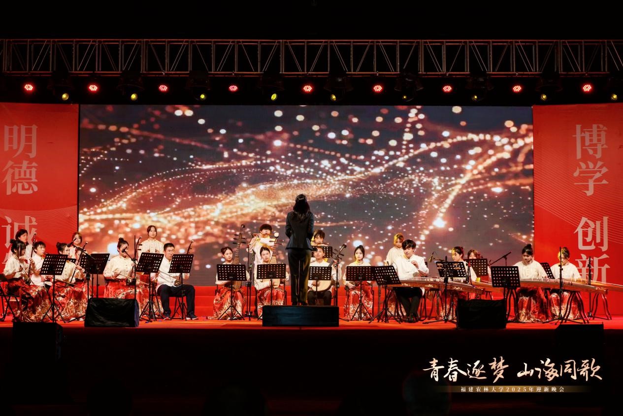 校大学生民乐团精心演奏的经典曲目《采茶扑蝶》,洋溢着浓郁的八闽风情与田园意趣。欢快的旋律仿佛将闽茶之乡的山野灵气融入校园,彰显了学校助推茶文化、茶产业、茶科技统筹发展的使命担当,展现出人与自然和谐共生之美。