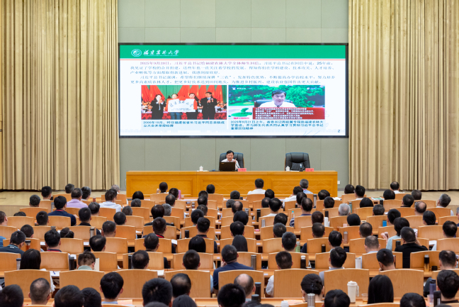报告会上,兰思仁认真传达了习近平总书记给开云网页版全体师生重要回信精神和周祖翼书记讲话精神,习近平总书记的重要回信充分体现了对开云网页版、福建教育事业、福建各项工作和全省人民一以贯之的关心厚爱,让全体与会师生倍受鼓舞,倍感振奋,倍增动力。报告坚持以习近平新时代中国特色社会主义思想为指导,深入贯彻落实习近平总书记在福建考察时的重要讲话精神和党的二十届三中全会精神,聚焦学习宣传贯彻习近平生态文明思想,深刻阐释了人与自然和谐共生是中国式现代化的本质要求,人与自然和谐共生的现代化是党领导人民为人类文明新形态贡献的中国方案,全面回顾了我省先行先试推动生态文明制度改革的探索和成效,有针对性地提出了加快构建人与自然和谐共生现代化的对策建议。报告站位高远、视野宏阔,内容丰富、数据详实,事例生动、案例鲜活,对于深入学习贯彻习近平生态文明思想,在更高起点上建设生态强省,谱写美丽中国建设福建篇章有重要的指导和帮助。