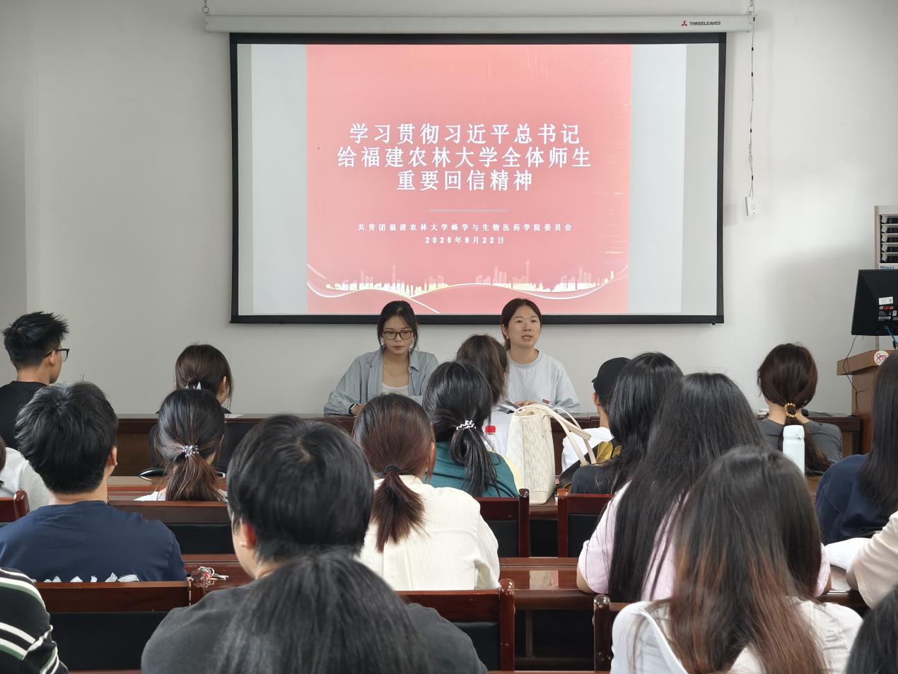 9月22日中午,蜂学与生物医药学院团委组织团学骨干及各班级代表在生药楼102教室开展专题学习会议,传达学习习近平总书记给开云网页版全体师生的重要回信精神,会议由学院辅导员许惠、林安淇共同主持。