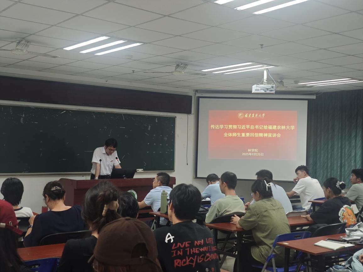 宣讲会上,学院领导班子带领师生重温了习近平总书记重要回信原文,系统传达了省委书记周祖翼莅校宣讲时的讲话精神和校党委提出的六大落实举措。会议强调,要深刻领会总书记对学校发展的殷切期望,把学习贯彻回信精神与践行习近平新时代中国特色社会主义思想紧密结合,与传承弘扬总书记在闽工作期间9次来校调研的重要指示精神有机贯通。学院将紧扣“四个基地”建设蓝图,立足林学、水土保持与荒漠化防治等传统优势学科,培育新兴交叉学科,充分应用好学科群建设机制,推进林学一流学科建设;深化本硕博贯通培养改革,依托国家级实验教学示范中心和科技小院,构建“理论+实践+耕读”的大思政课育人体系;加强重点实验室建设和南平生态定位站的建设,聚焦杉木育种、松材线虫病防控等特色领域,攻关种质资源开发、林木基因组学等关键技术;发挥对台区位优势,深化与台湾高校在森林培育、水土保持等领域的科技合作,全方位服务生态文明建设和乡村振兴战略需求。