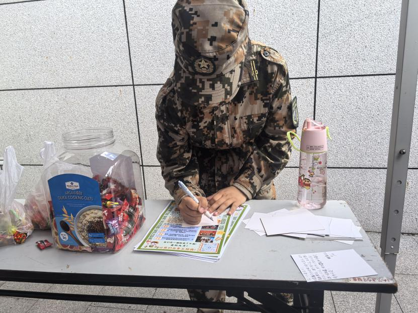 活动现场,在“笔墨诉真情”感恩祝福收集环节,新生们领取糖果与贺卡,以彩笔为媒。与此同时,“天使助军训”爱心物品投递活动同步开展,新生可将纸杯、湿巾、糖果等物资送至学院军训大本营,供有需要的同学自行领用,以匿名互助形式延续温暖。