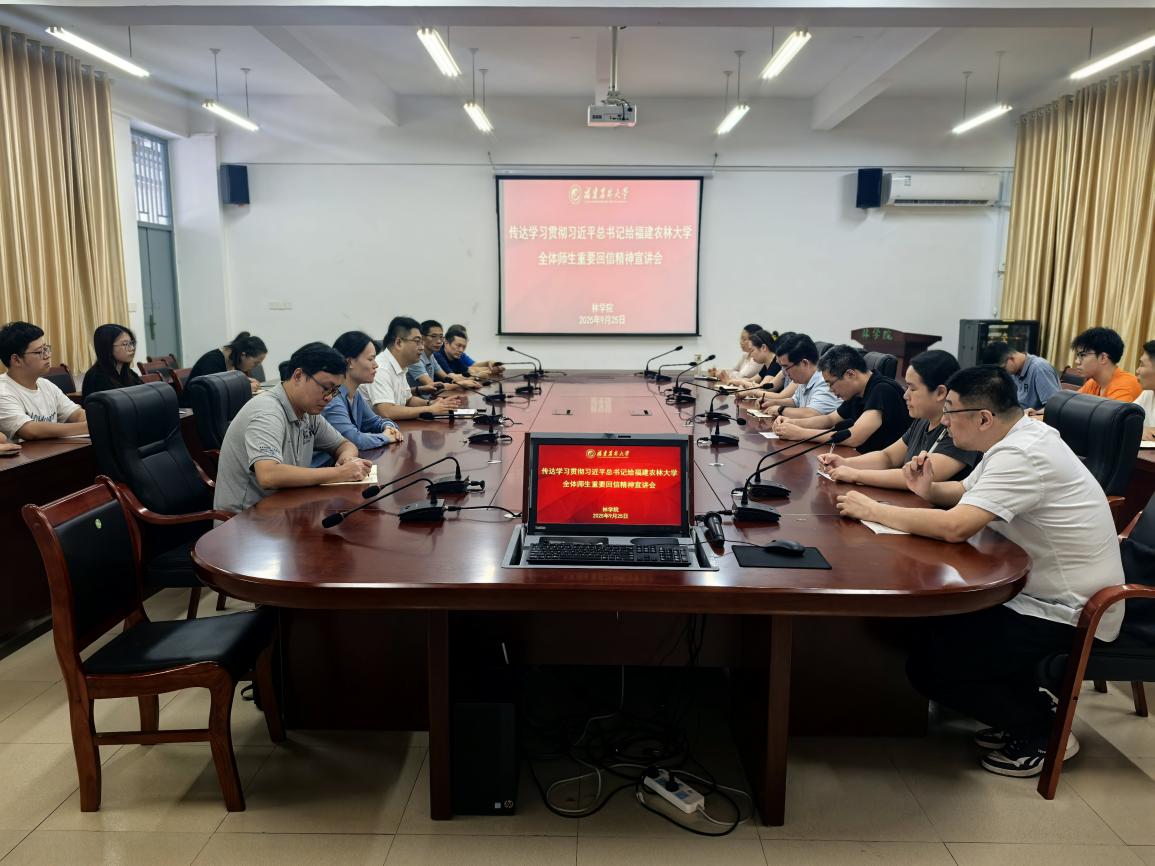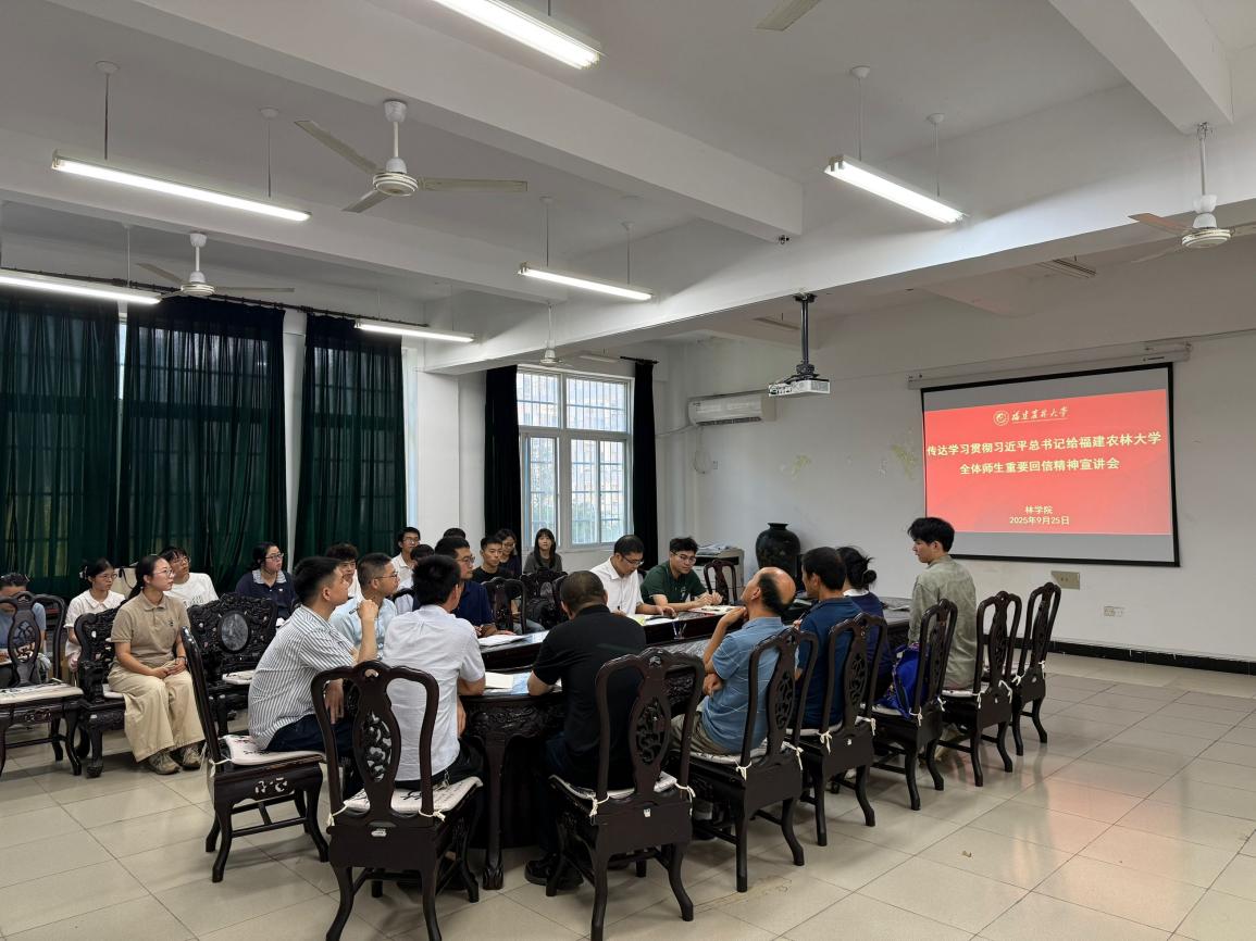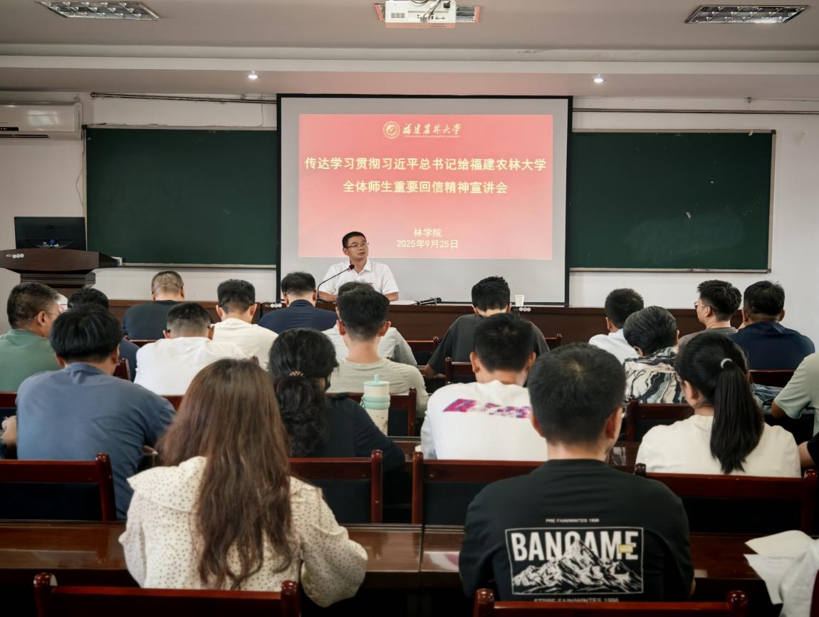 宣讲会上,学院领导班子带领师生重温了习近平总书记重要回信原文,系统传达了省委书记周祖翼莅校宣讲时的讲话精神和校党委提出的六大落实举措。会议强调,要深刻领会总书记对学校发展的殷切期望,把学习贯彻回信精神与践行习近平新时代中国特色社会主义思想紧密结合,与传承弘扬总书记在闽工作期间9次来校调研的重要指示精神有机贯通。学院将紧扣“四个基地”建设蓝图,立足林学、水土保持与荒漠化防治等传统优势学科,培育新兴交叉学科,充分应用好学科群建设机制,推进林学一流学科建设;深化本硕博贯通培养改革,依托国家级实验教学示范中心和科技小院,构建“理论+实践+耕读”的大思政课育人体系;加强重点实验室建设和南平生态定位站的建设,聚焦杉木育种、松材线虫病防控等特色领域,攻关种质资源开发、林木基因组学等关键技术;发挥对台区位优势,深化与台湾高校在森林培育、水土保持等领域的科技合作,全方位服务生态文明建设和乡村振兴战略需求。