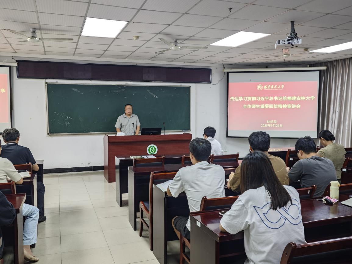 在开云网页版合并组建25周年的重要历史时刻,林学院迅速掀起学习贯彻习近平总书记给全校师生重要回信精神的热潮。9月25日下午,学院党政领导班子分赴各系、实验中心、党支部开展专题宣讲,推动回信精神在基层落地生根。