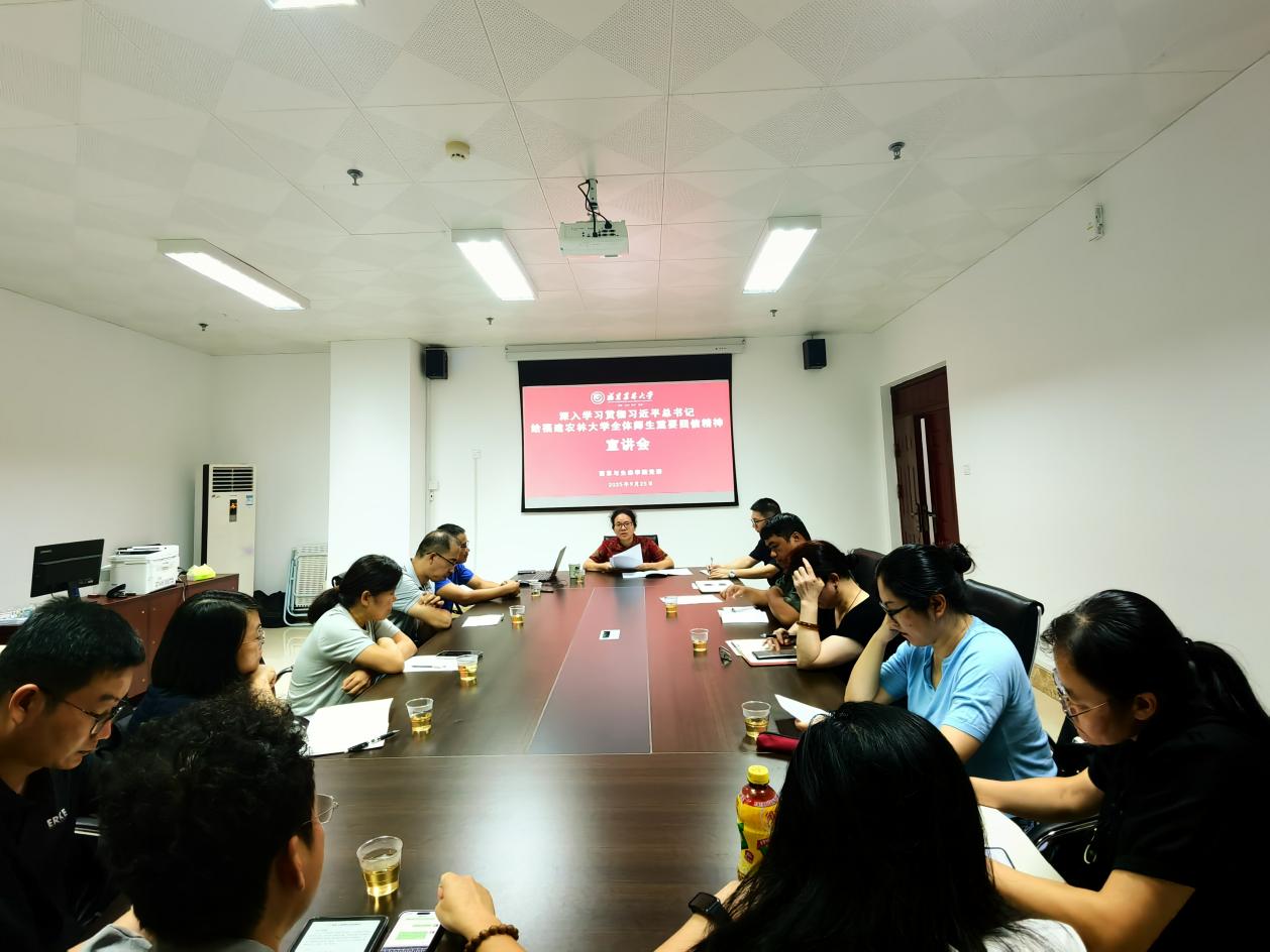 陈月霄结合学院实际、学科特色强调,一要深刻体悟习近平总书记重要回信精神。把学习好、宣传好、贯彻好总书记重要回信精神作为当前和今后一个时期首要政治任务来抓,学院班子成员带头认真学习,到所联系的支部、系进行宣讲。二要落实立德树人根本任务,把习近平总书记重要回信精神融入课堂教学,提升课程思政水平,激发农林大人“深耕三农”的责任感和使命感。三要发挥自然地理专业特色和优势,积极打造交叉融合、协同并进的平台和项目,为农林生态发展注入新的动力。四要积极推进开放办学,深化UBC中加合作办学项目,全面加强与外方教师的教学科研合作,强化师资队伍建设。