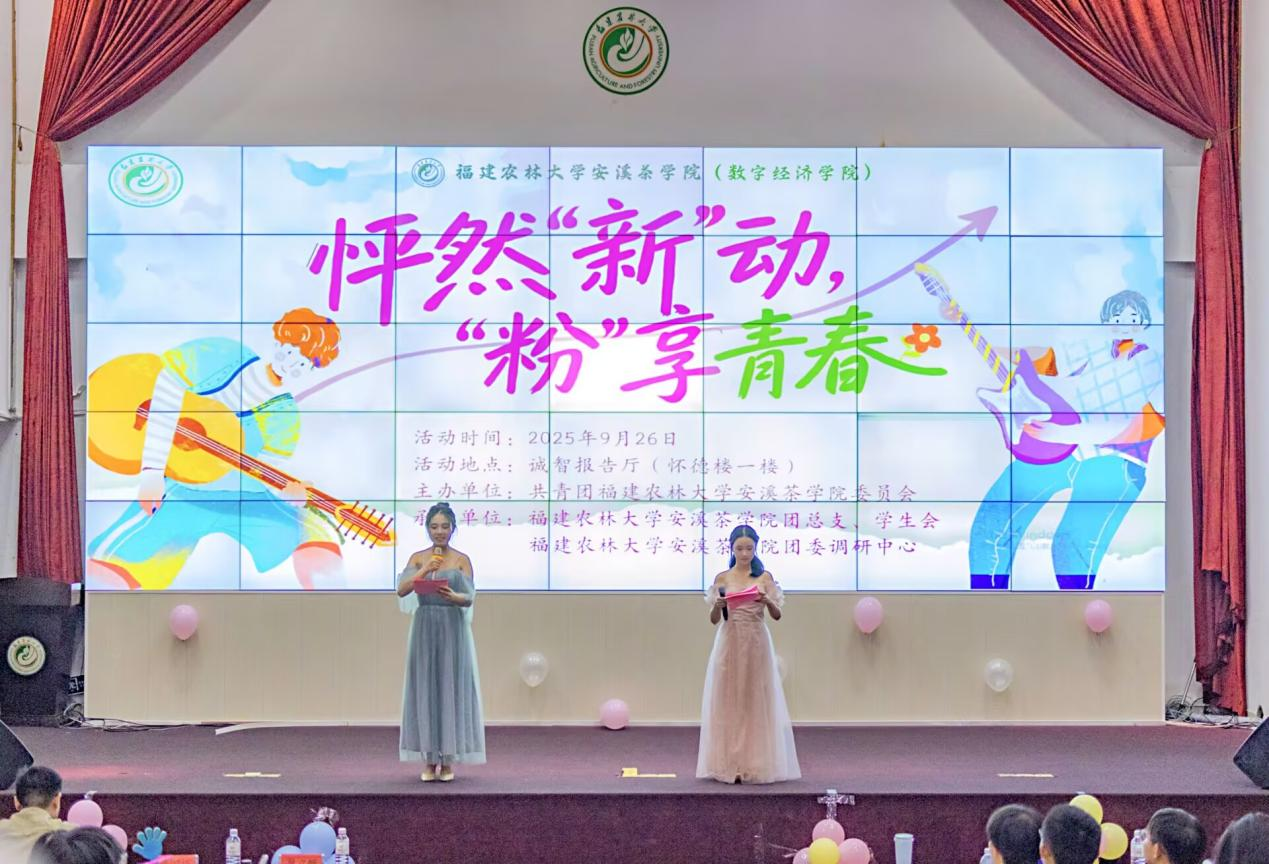 9月26日,安溪茶学院(数字经济学院)于校区诚智报告厅举办“怦然‘新’动,‘粉’享青春”新生才艺展示晚会。安溪茶学院(数字经济学院)副院长吴义炳,安溪茶学院团委书记黄国栋,全体辅导员及教师代表,受邀出席,2025级新生代表参与。
