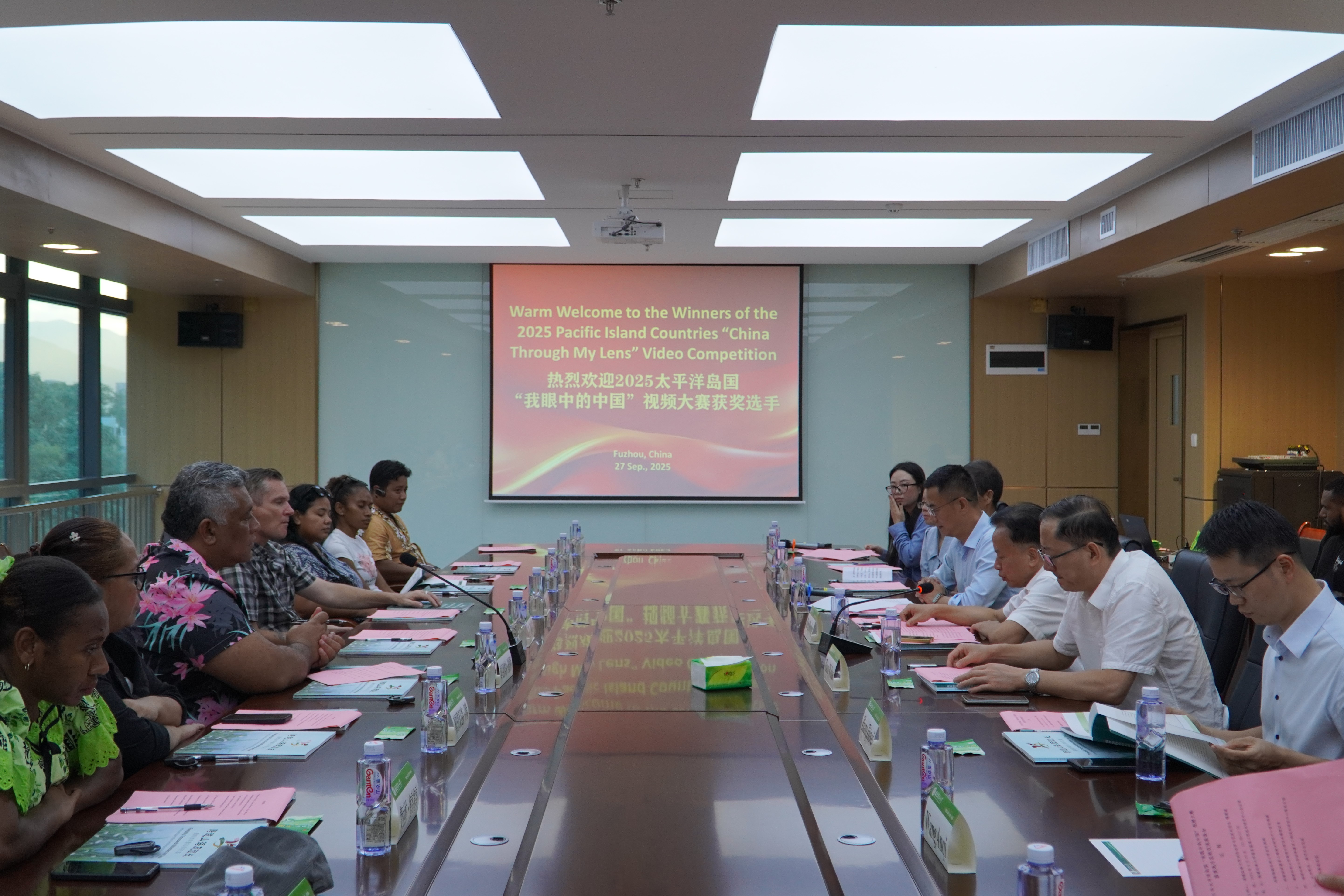 9月27日,2025年太平洋岛国“我眼中的中国”视频大赛获奖选手一行莅校访问。外交部美大司参赞张卫涛、福建省外办美大处处长张志伟等随行,副校长郑宝东陪同参访并参加座谈会。