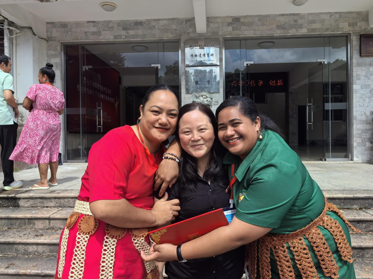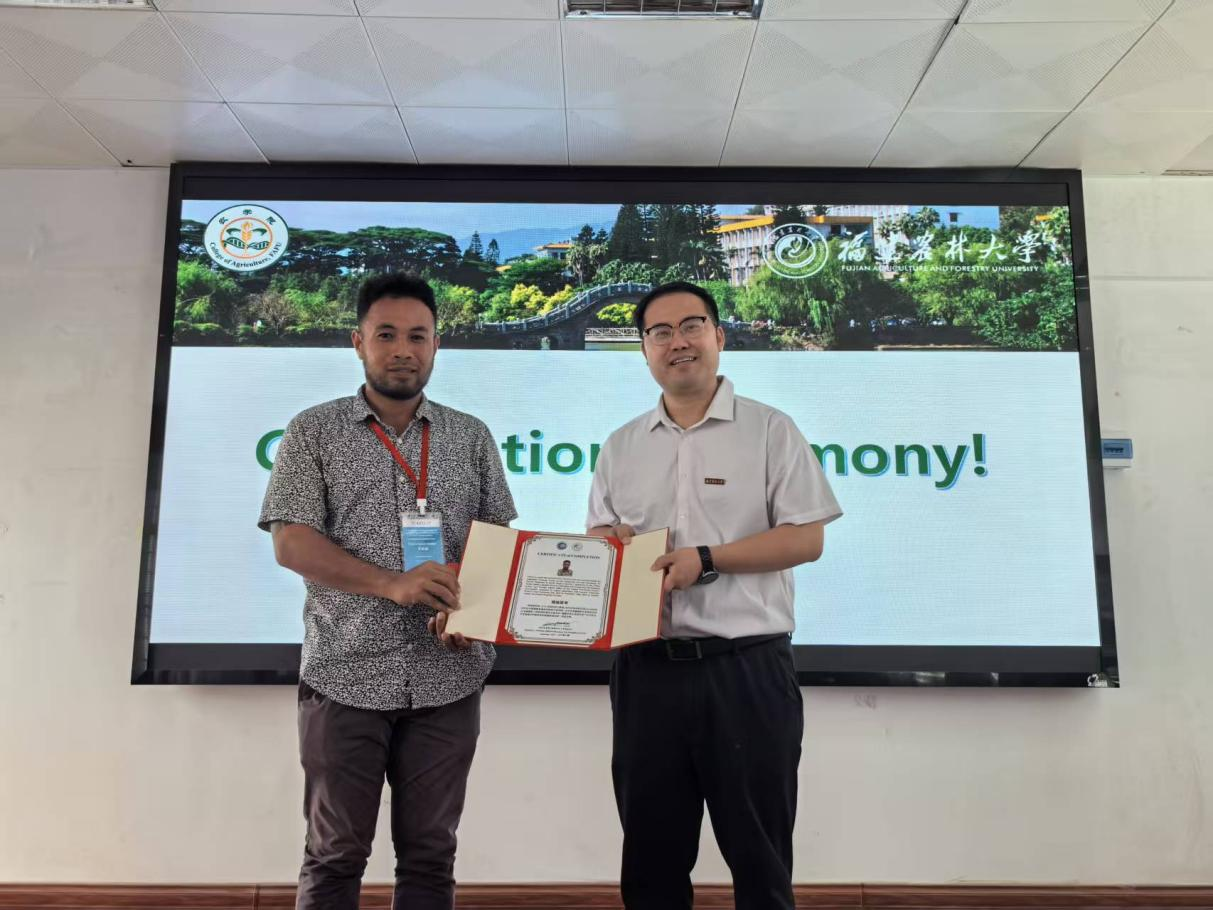结业典礼上,林喜强代表农学院向全体学员顺利结业致以热烈祝贺。他表示,本次培训是中国与太平洋岛国深化农业合作、共促减贫发展的重要实践。20天的培训时间,学员们认真求学、积极实践,收获满满。希望学员以此次学习为契机,将中国“藏粮于技”的创新理念、“因地制宜发展特色产业”的减贫经验带回太平洋岛国,转化为推动当地农业增产、农民增收的实际成效;更期待大家继续担当友谊使者,讲好中国故事、传递合作诚意,让友谊之树愈发茂盛、合作之花持续绽放。