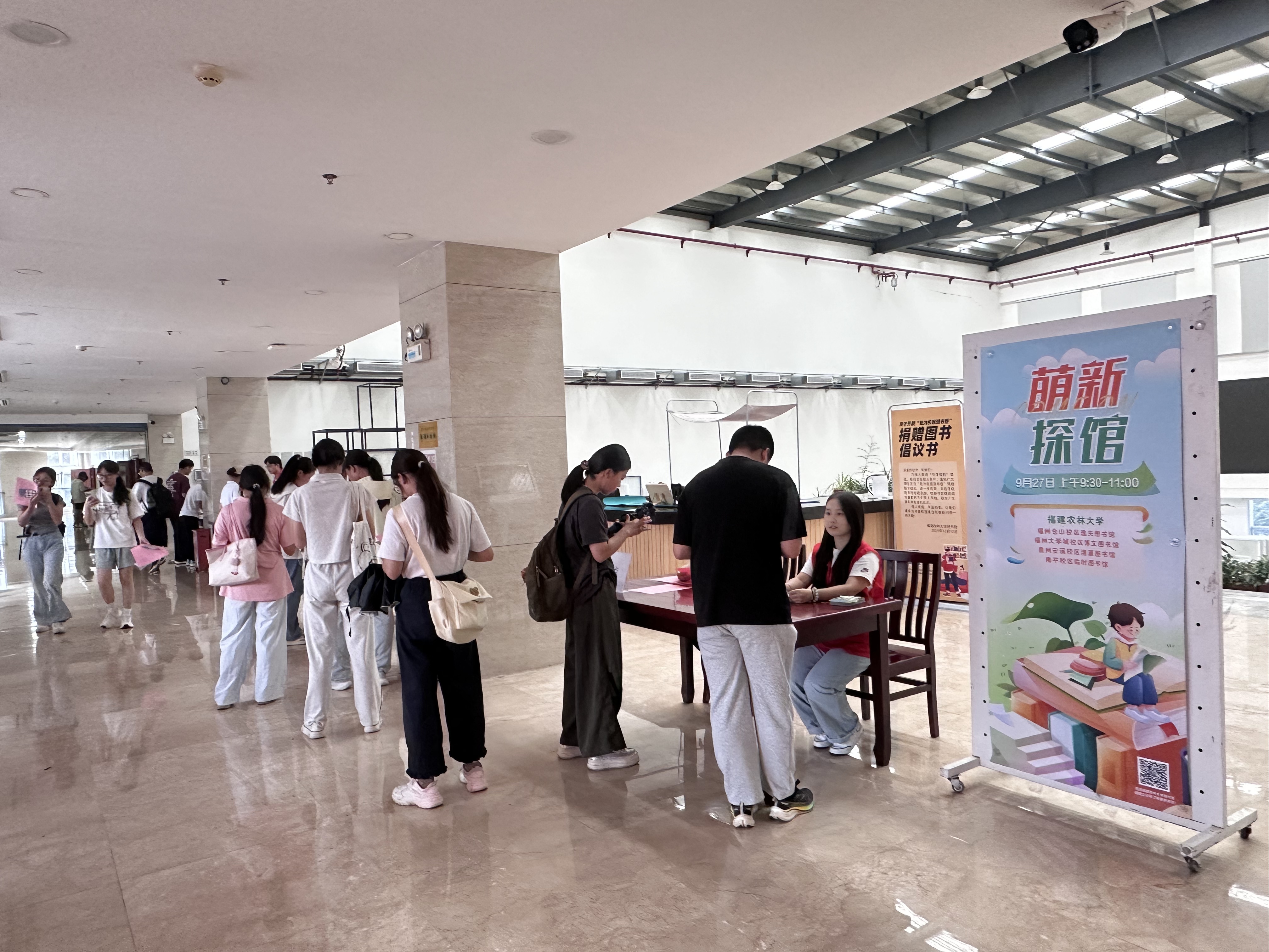 为帮助2025级新生熟悉图书馆资源与服务,尽快融入大学生活,图书馆于9月27日上午在福州仓山校区逸夫图书馆、福州大学城校区博文图书馆、泉州安溪校区清源图书馆、南平校区临时图书馆同步组织开展2025年“萌新探馆”开学季迎新活动。活动现场吸引了1146名同学前来参加。