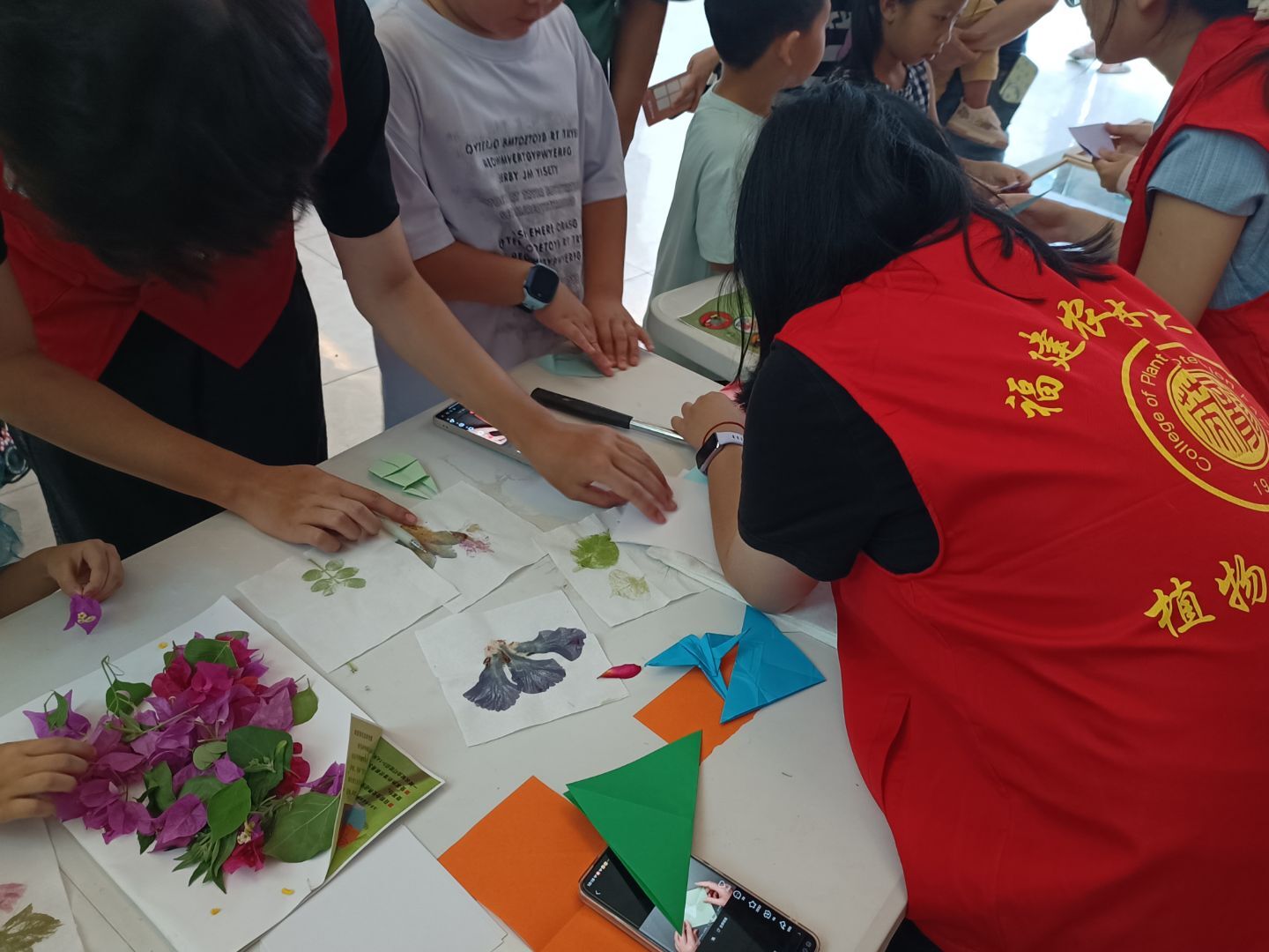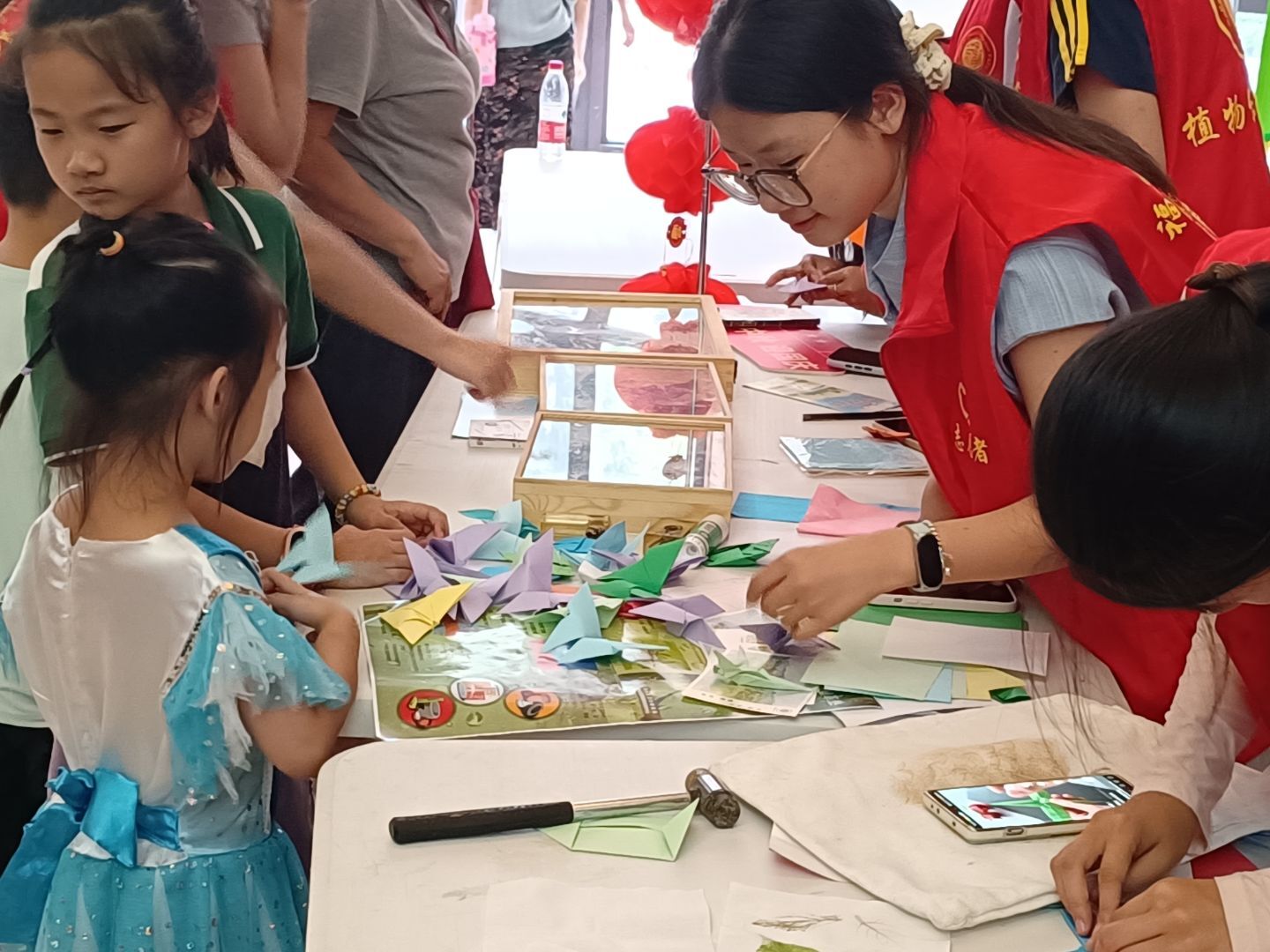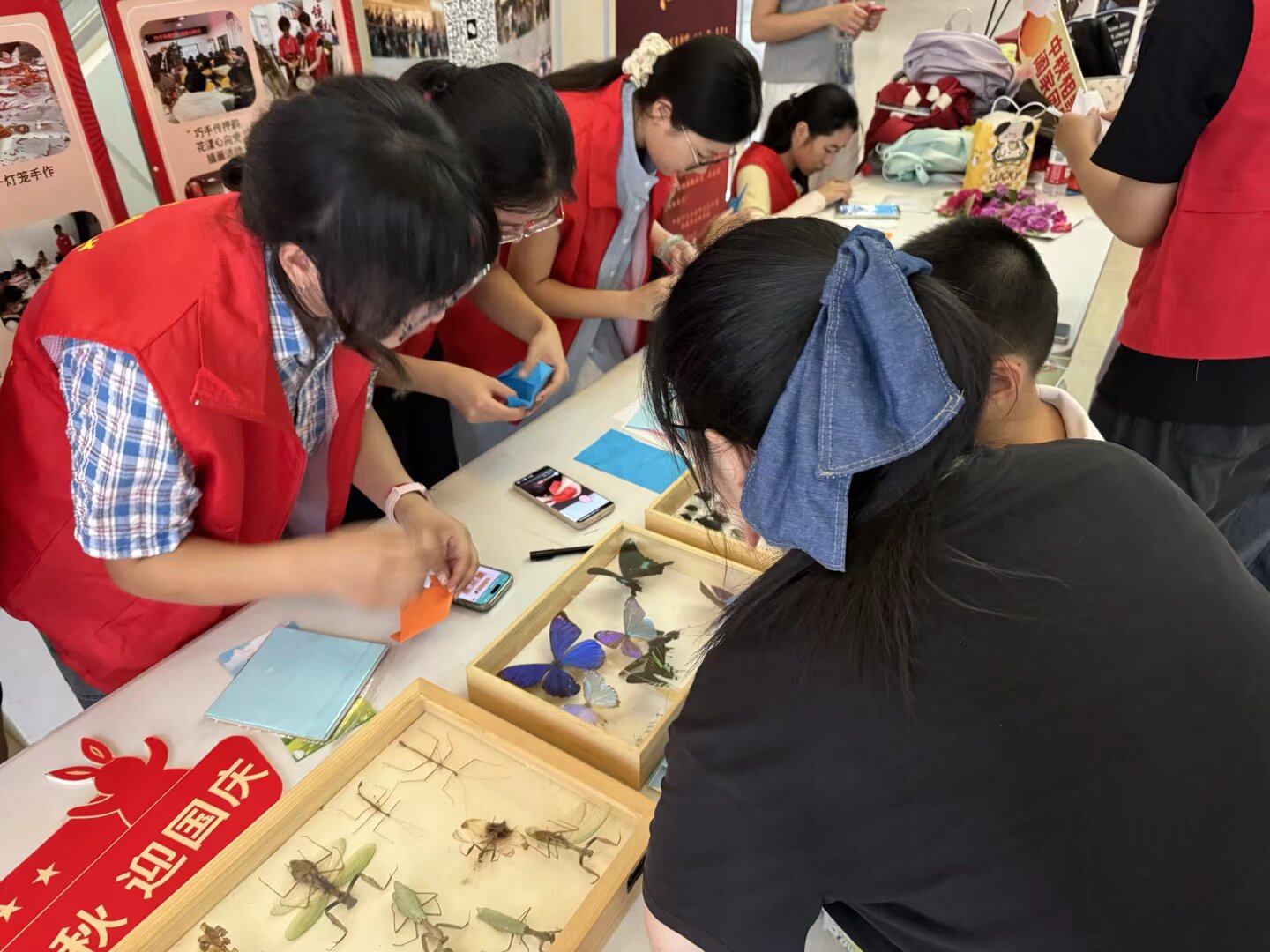 在折纸环节中,通过志愿者的指导,孩子们拿起彩纸,认真地折叠、翻转、拼接,一只只活灵活现的纸蝴蝶便在孩子们的手中“诞生”了。昆虫折纸体验不仅锻炼了孩子们的手眼协调能力和耐心,更让他们在创造的过程中,加深了对昆虫形体结构的理解。