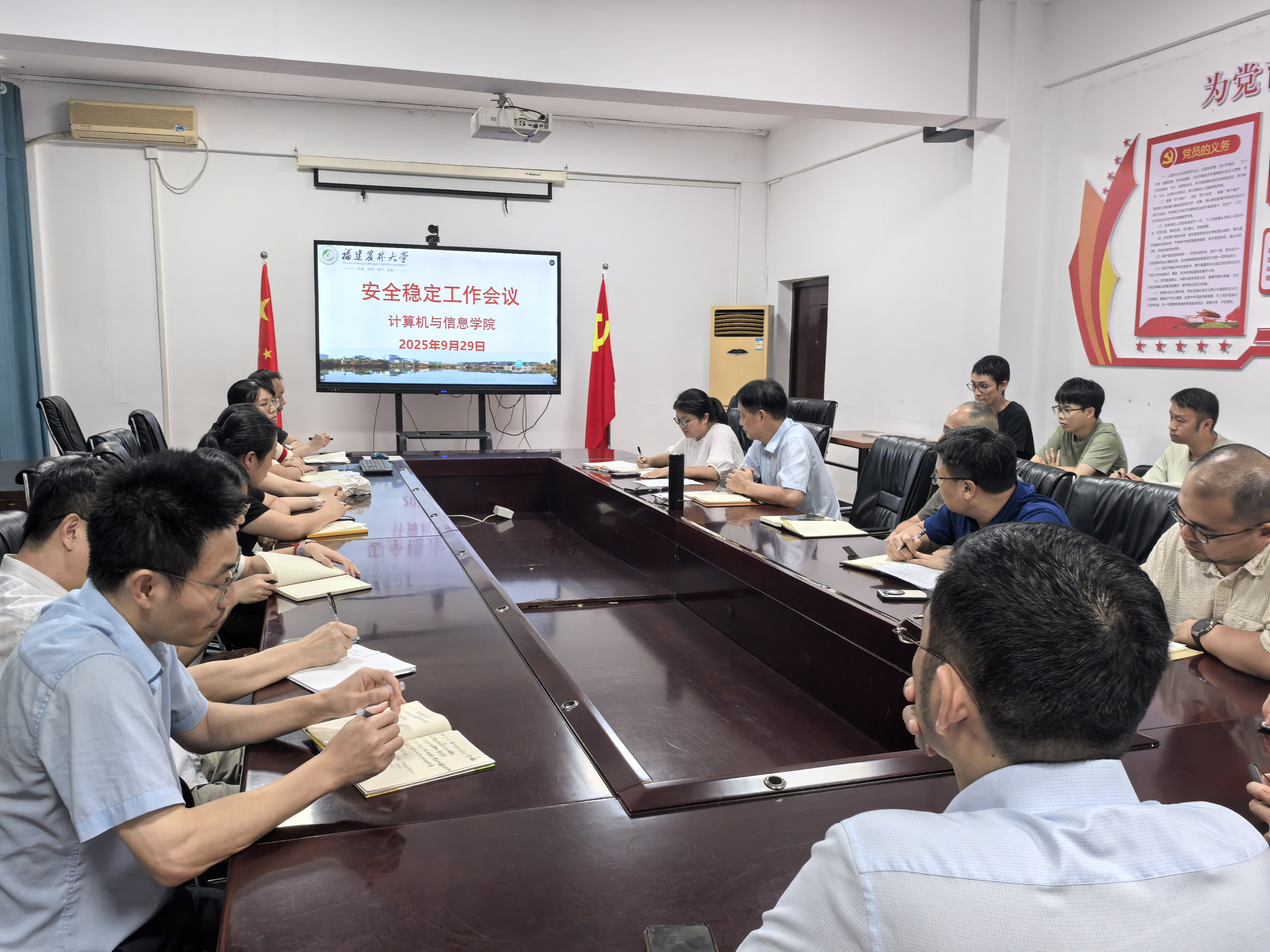 9月28日,计算机与信息学院在302会议室召开安全稳定工作会议;学院党政领导、系主任、科级干部、辅导员参加了会议,会议由学院党委书记曾起郁主持。