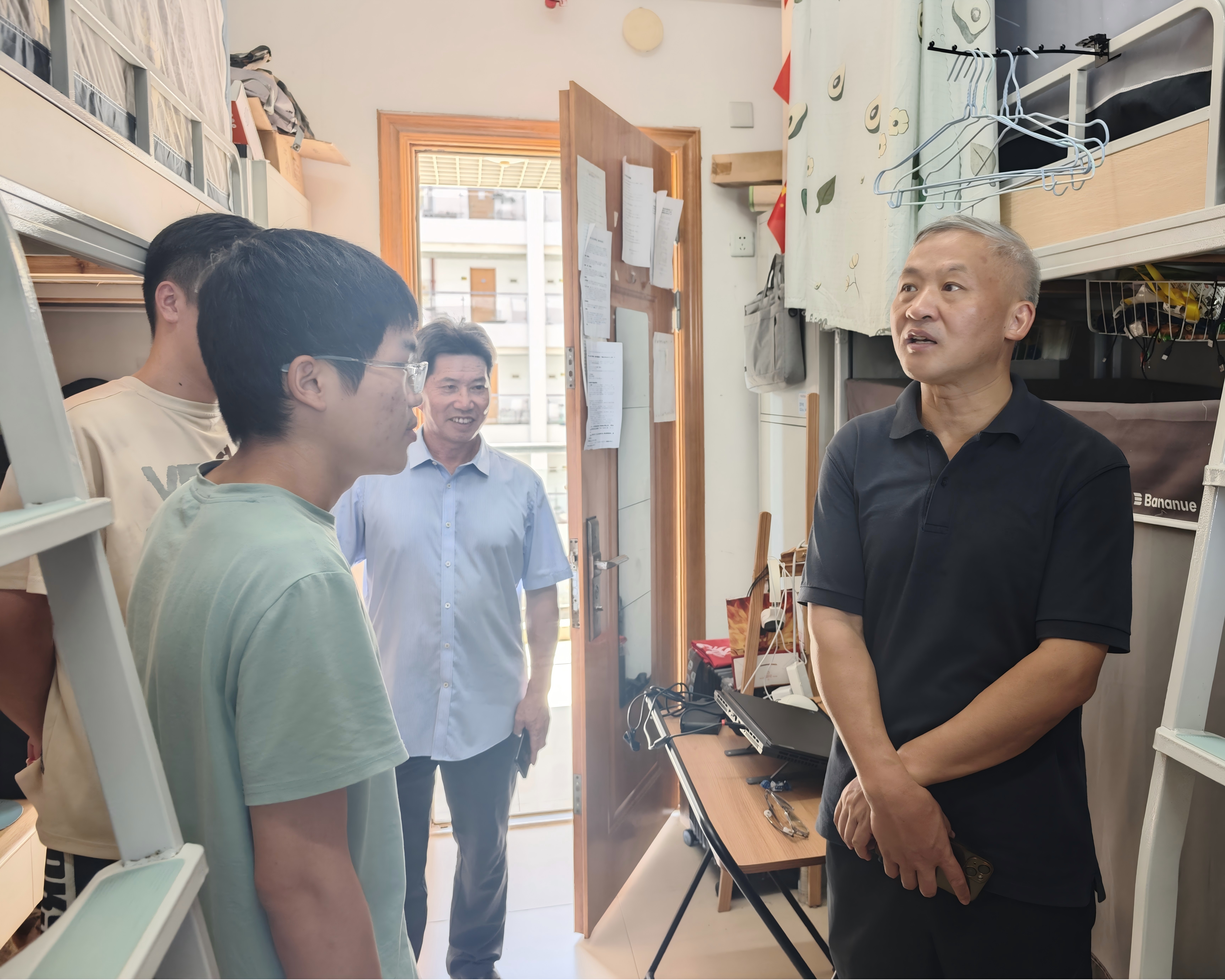 在学生宿舍,院领导一行重点排查了有无违规电器使用情况、消防通道堵塞等安全隐患问题,同时细致察看宿舍环境卫生、物品摆放及通风情况,提醒留校学生严格遵守宿舍管理制度,注意人身和财产安全。