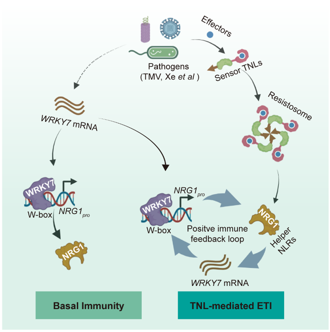 图2. The WRKY7-NRG1 module forms a positive feedback loop during effector-triggered immunity (ETI).