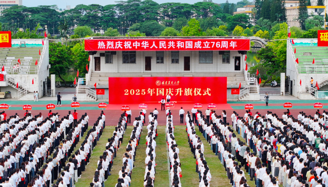 10月1日清晨,我校在福州仓山校区、福州大学城校区、泉州安溪校区和南平校区同步举行升国旗仪式,热烈庆祝中华人民共和国成立76周年。校党委书记赖海榕,校长兰思仁,校党委副书记陈世奎、曾华平,副校长郑宝东、唐振鹏、周顺桂,校纪委书记陈艳出席活动。全体中层干部、校区校园办干部、政工干部、管理干部和各学院学生代表共五千余人参加。升国旗仪式由曾华平主持。