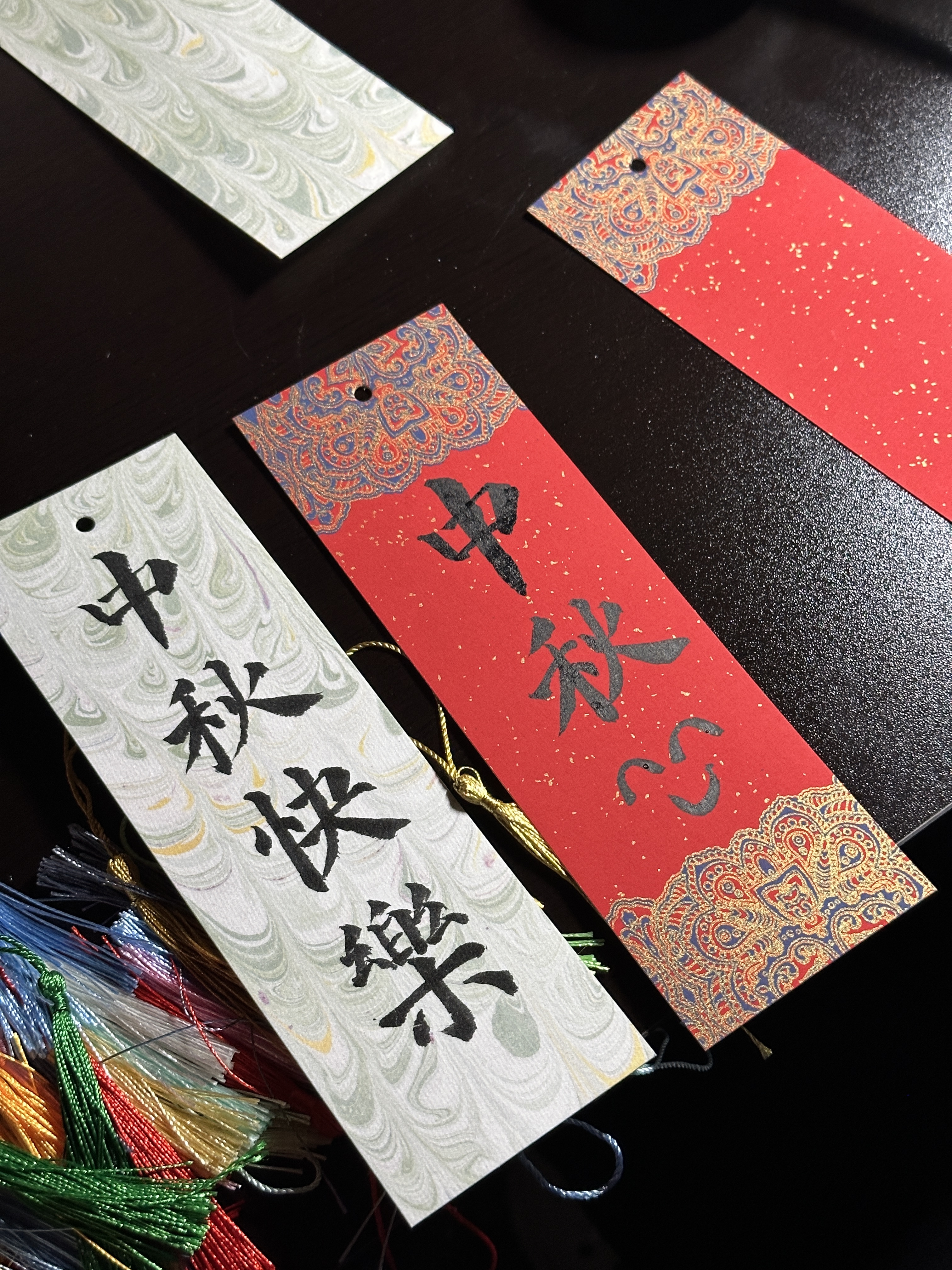 本次活动设有两个区域,分别为手写书签区和游戏区。书签区提供给同学们写下心中愿景,工作人员以细腻的笔触在精致书签上尽情挥洒创意,将对中秋的美好祈愿凝于笔端。每一张书签都如同一封微型的温情信笺,在传递节日问候的同时,也让参与活动的、留校的同学们于笔墨间触摸到传统文化的温度,为中秋文化的传承与校园文化生活的丰富添上了极具人文感的一笔。游戏区共设有两项活动,其中,猜灯谜区准备了丰富多彩的谜题,内容涵盖中秋典故、传统文化知识与趣味字谜等多个类别。同学们或独自凝神思索,或三五成群热烈讨论。一个个灯谜如同文化密码,在猜解的过程中,让大家对中秋的文化内涵有了更生动的认知。而在团圆故事接龙环节,同学们围坐一圈,围绕中秋团圆主题,每人依次续编简短的故事情节。初入校园的学弟学妹讲述家人团聚共赏明月的温馨场景,期盼千里归家的留校学子创作了游子千里归家的动人情节,参与活动的老师们将神话元素融入其中,让故事充满奇幻色彩。在你一言我一语的接龙中,团圆的意义在不同的故事版本里被不断诠释,大家在创作与聆听中,深切体会到中秋团圆所承载的情感重量,也让团圆的文化内核在创意的碰撞中愈发鲜活。