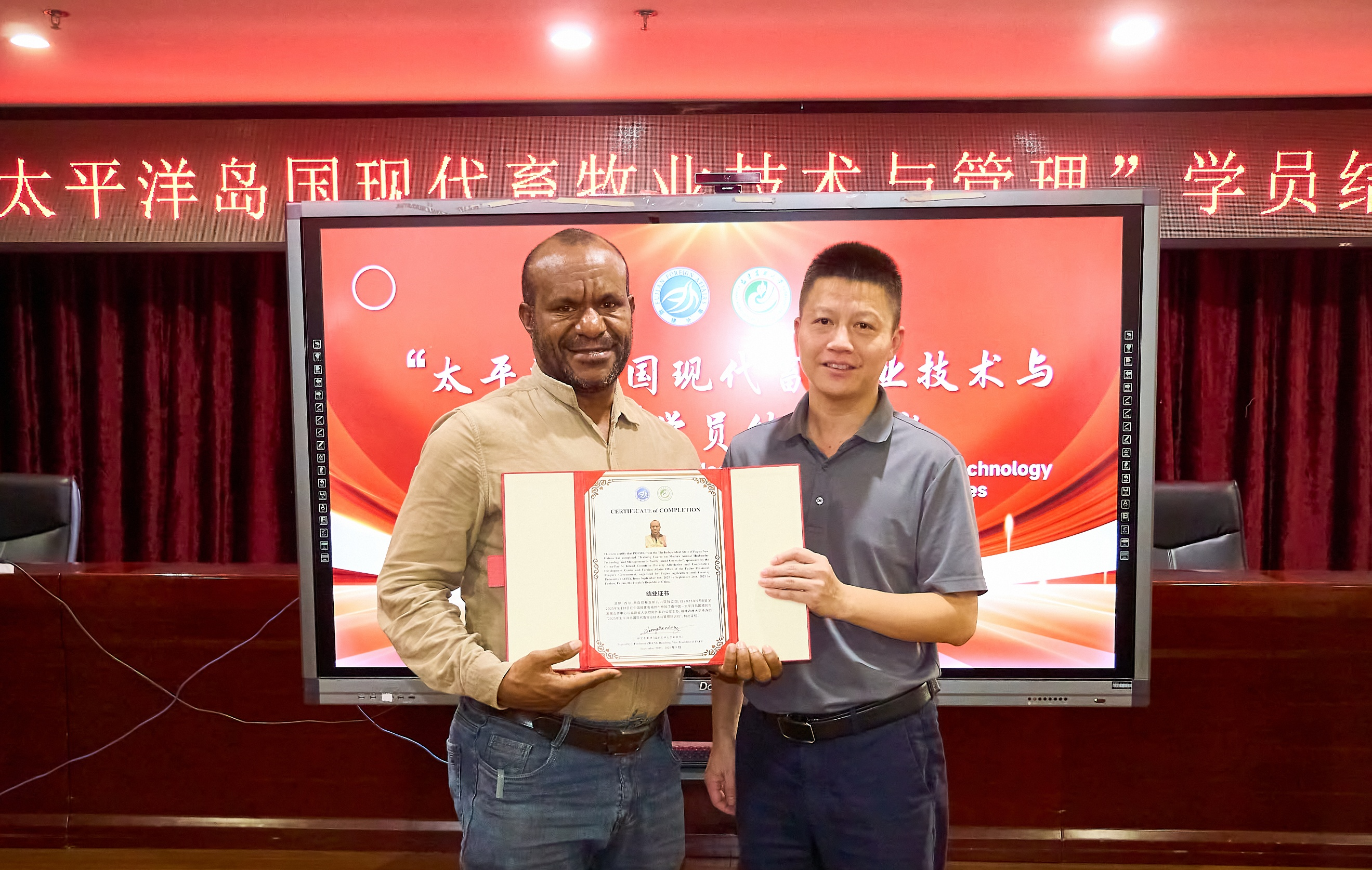 近日,由福建省人民政府外事办公室组织、开云网页版主办、动物科学学院承办的太平洋岛国现代畜牧业技术与管理培训班学员结业典礼在动物科学学院大会议室举行。动物科学学院党委书记修新田、副院长(主持工作)郭桂杰、党委副书记贺鹏、副院长阳伏林、授课教师代表,以及来自巴布亚新几内亚、汤加、所罗门群岛、瓦努阿图等太平洋岛国的15名学员共同参加此次结业典礼。结业典礼由阳伏林主持。