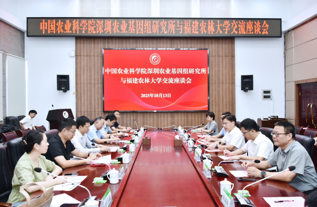 中国农业科学院深圳农业基因组研究生态中心、组学中心、植物中心、合成中心及研究生管理办公室相关人员,我校党政办、发规处、研究生院、科技处、植物保护学院、生命科学学院、海峡联合研究院(未来技术学院)、农学院负责人参加座谈。