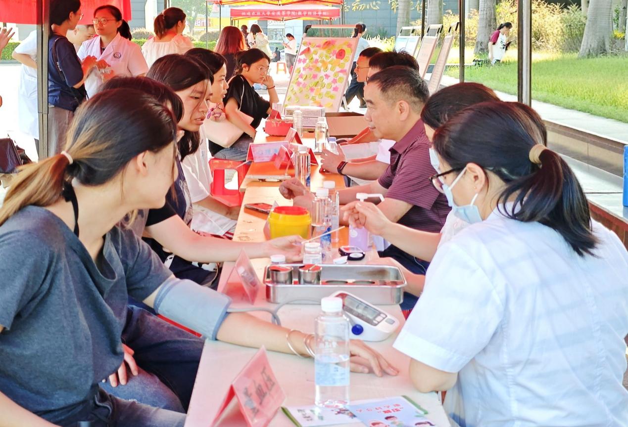 活动现场设置了多个活动区。安溪第三医院多领域医师组成的联合义诊活动,为学生们提供全面健康检查、心理测验与评估与VR心理减压体验等服务。入口处的心理知识宣传站点,工作人员发放传单,助力传递心理关怀知识,帮助大家更好地关注自身心理健康。