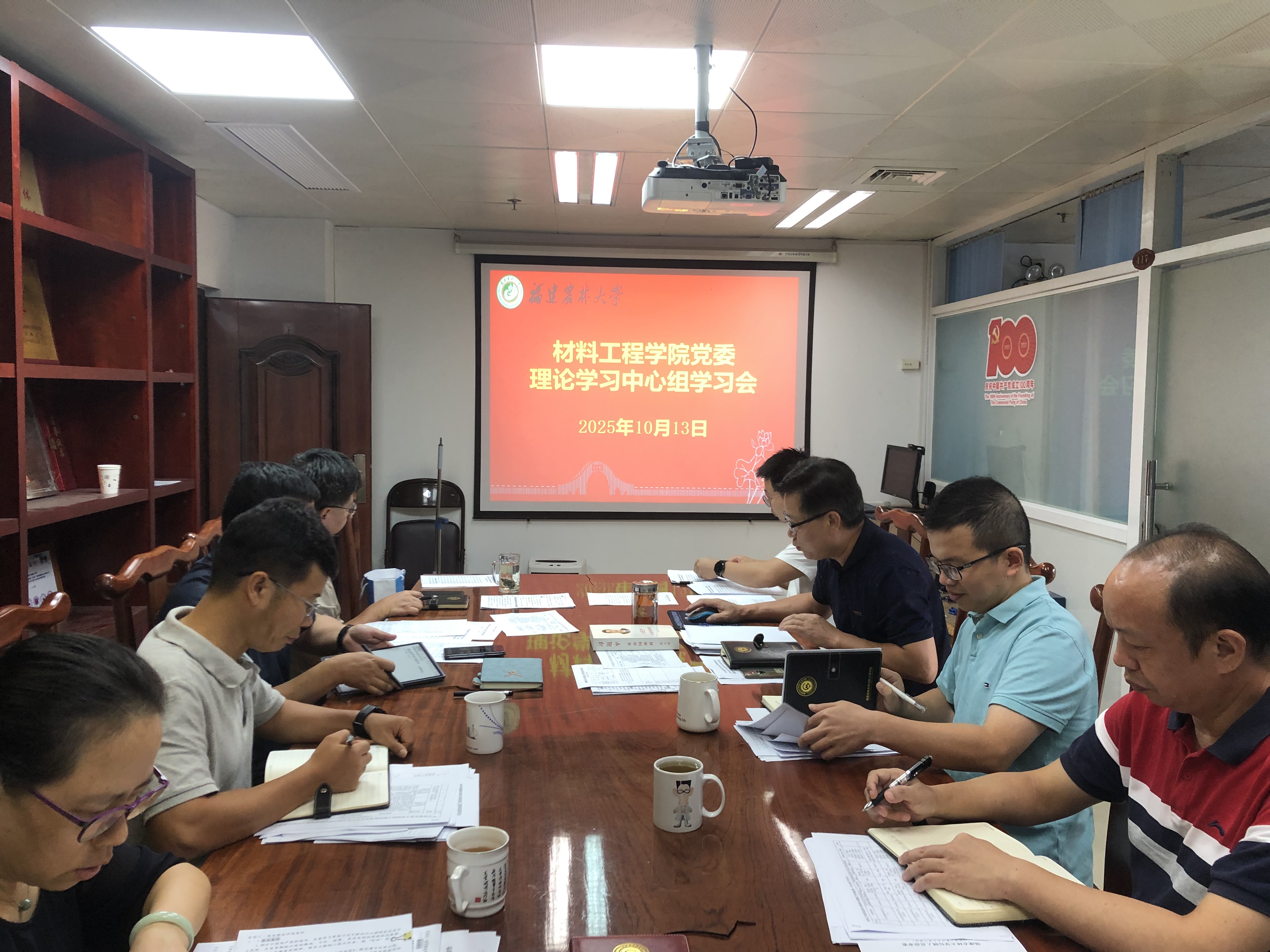 10月13日,材料工程学院党委理论学习中心组在大学城校区仁德楼417会议室召开学习会,专题学习《习近平谈治国理政》第五卷。会议由院党委书记林豪森主持,院党委理论学习中心组成员参加了学习交流会。