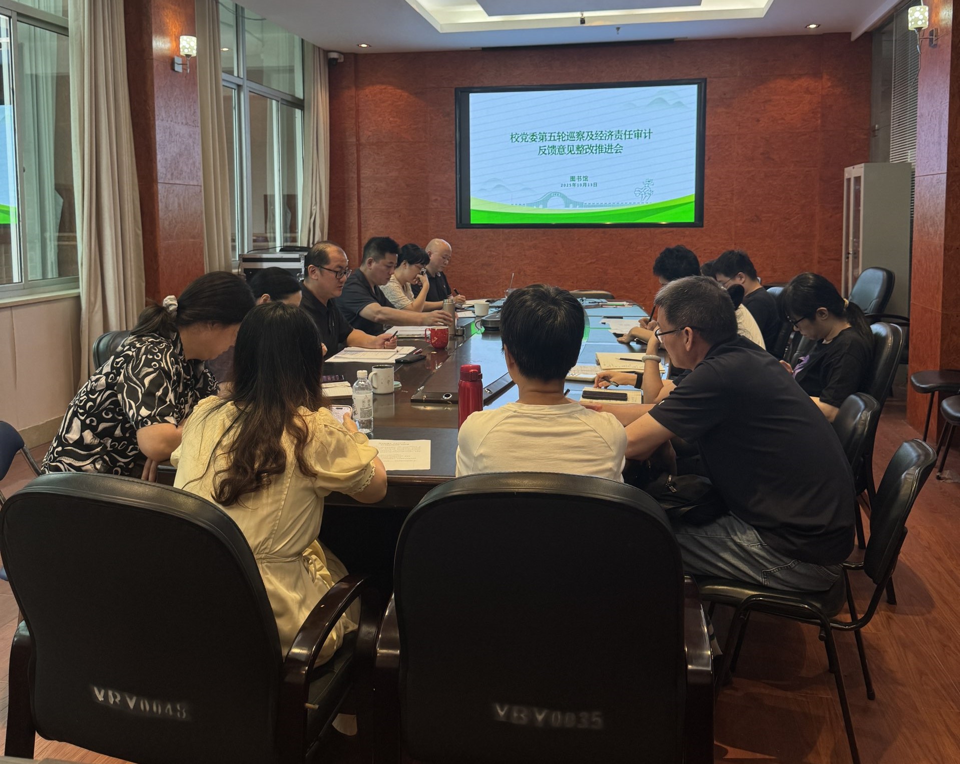 10月13日上午,图书馆在逸夫馆四楼会议室召开校党委第五轮巡察及经济责任审计反馈意见整改推进会,图书馆领导班子、科级干部、各内设部门负责人参加。