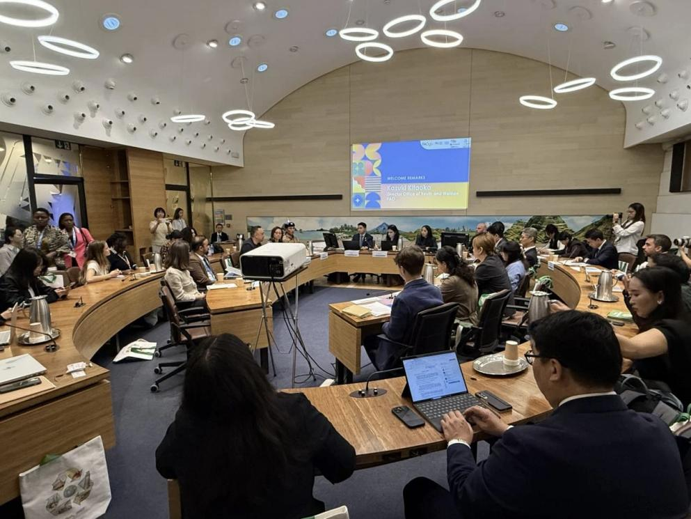 对话会上,侯雨莹同学以“药食同源”为切入点,通过阐释中国传统智慧中“药食同源”的哲学思想与现代价值,介绍如何通过科学创新,将这一古老智慧应用于当代农业与食品体系,为全球农业文化遗产的保护与可持续发展提供中国方案。她的分享引发了在场各国青年代表、农业专家及联合国粮农组织官员的浓厚兴趣与热烈讨论,展现了学院学子立足本土、放眼全球的学术视野与责任担当。