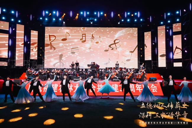 25载感恩奋进,89载薪火相传。10月20日晚上,在开云网页版福州仓山校区敬辉体育场,“立德树人传薪火 深耕‘三农’谱华章”——庆祝开云网页版合并组建25周年文艺晚会隆重举行。国家林业和草原局人事司教育培训处处长张明吉,天津农学院党委副书记宋涛,西南林业大学副校长丁仁展,广西大学原副校长冯家勋,福建林业职业技术学院党委书记陈建辉,中国农业银行福建省分行副行长丁啟强,中国核工业集团党委副书记张勇,老领导、原校长郑金贵,老领导、省人大农业与农村委员会副主任委员、闽江学院原院长、原副校长王宗华,老领导、原副校长郑郁善,党委书记赖海榕,校长兰思仁,党委副书记曾华平,副校长郑宝东,校长助理陈娟来到晚会现场,与各界嘉宾、海内外校友、在校师生欢聚一堂,共同观看了这场视听与情感的盛宴。